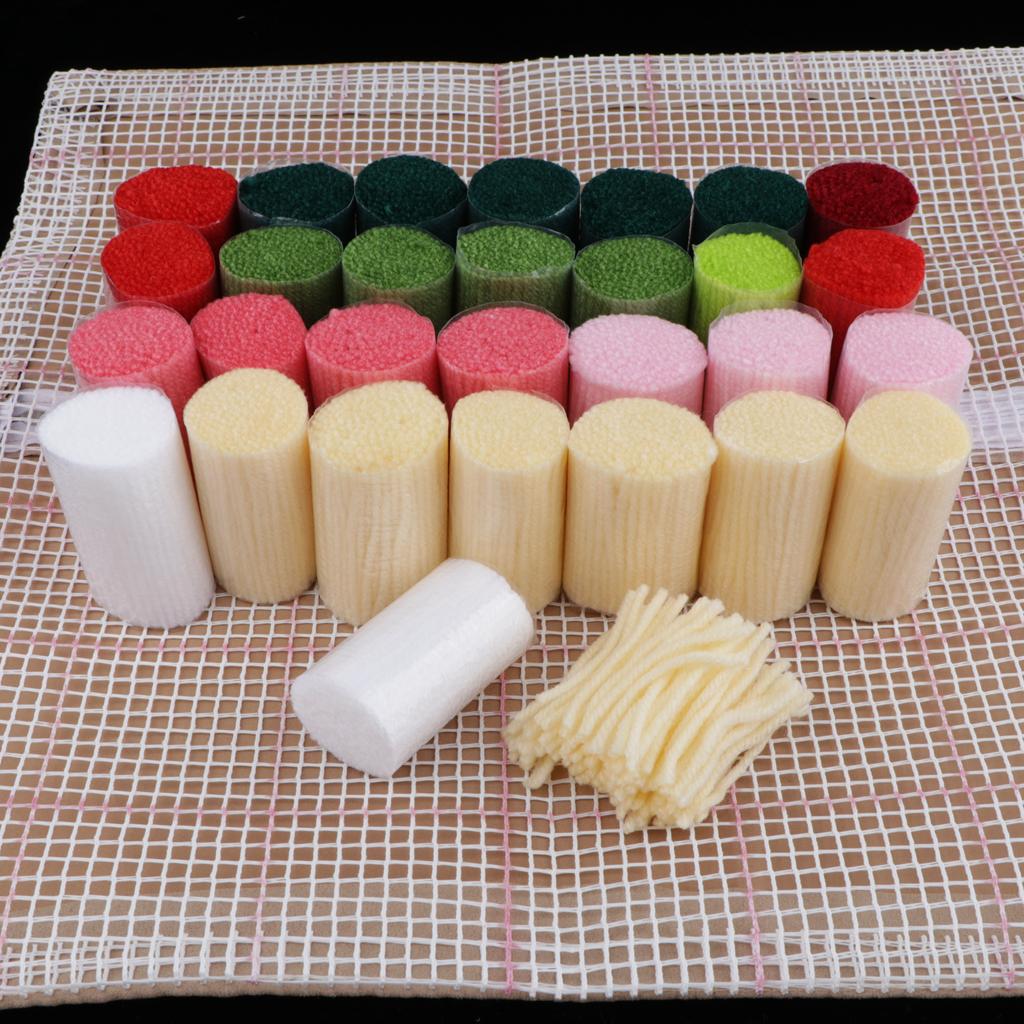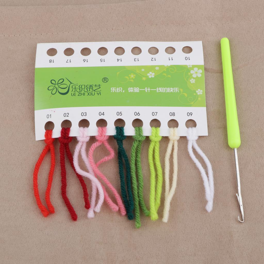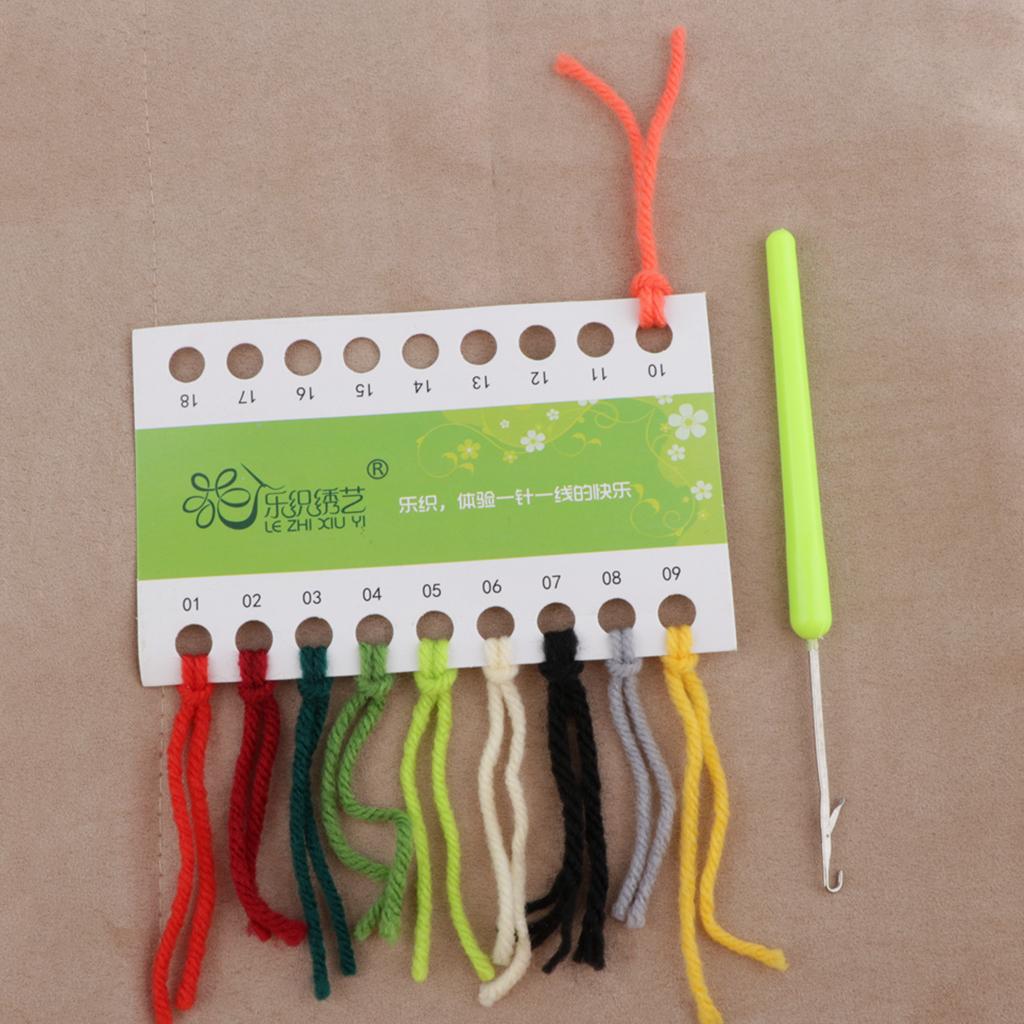 Material: Polyester fiber embroidery thread, color card, mesh embroidered cloth, latch hook, colorful drawing accessories.