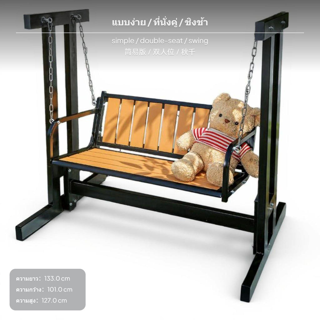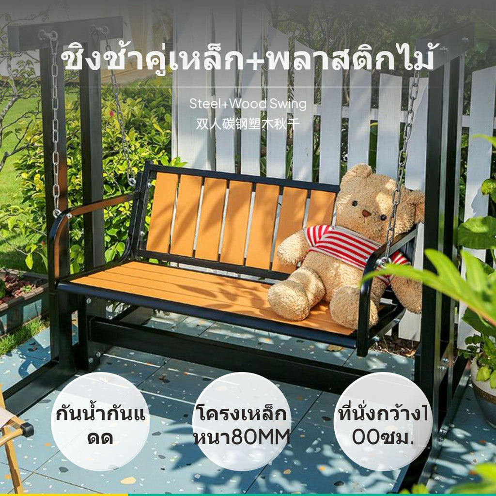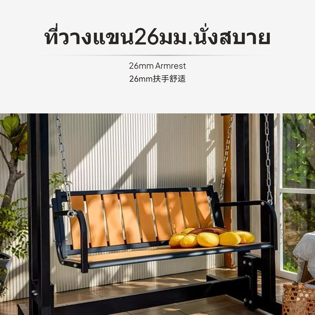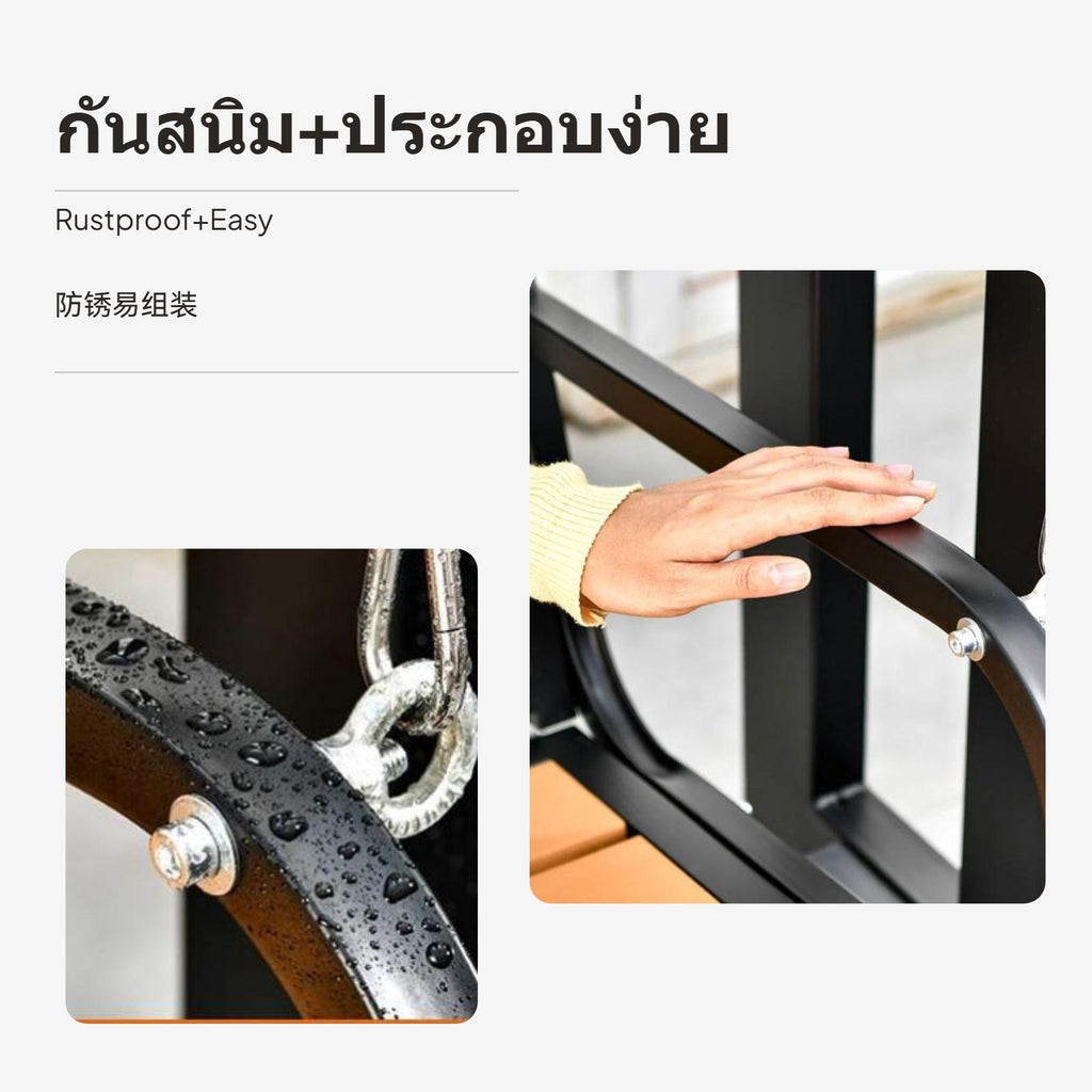 [adaptable Outdoor Use] This 2-seat outdoor hanging bench bench combines waterproof and sun-resistant synthetic wood with a sturdy steel frame, making it perfect for patios, gardens, and villa terraces.[Strong Load Capacity & Stability] Designed with thickened galvanized steel and a reinforced frame framework, the outdoor seat comfortably supports two adults, offering dependable seating for relaxation and leisure.[Easy to Clean & Maintain] Featuring polished surfaces crafted from synthetic wood wood, this bench seat seat bench resists water and discoloration, allowing for simple and quick cleaning with a simple wipe.[Comfortable & Breathable Design] The gap between the seat and backrest conforms to the human anatomy shape, ensuring ventilation and a pleasant sitting sensation for extended outdoor enjoyment.[Simple Assembly & Modern design] Easy-to-assemble with detachable parts, the minimal modern design in timeless black and orange brown complements a range of outdoor designs, enhancing any leisure space.Specification:
