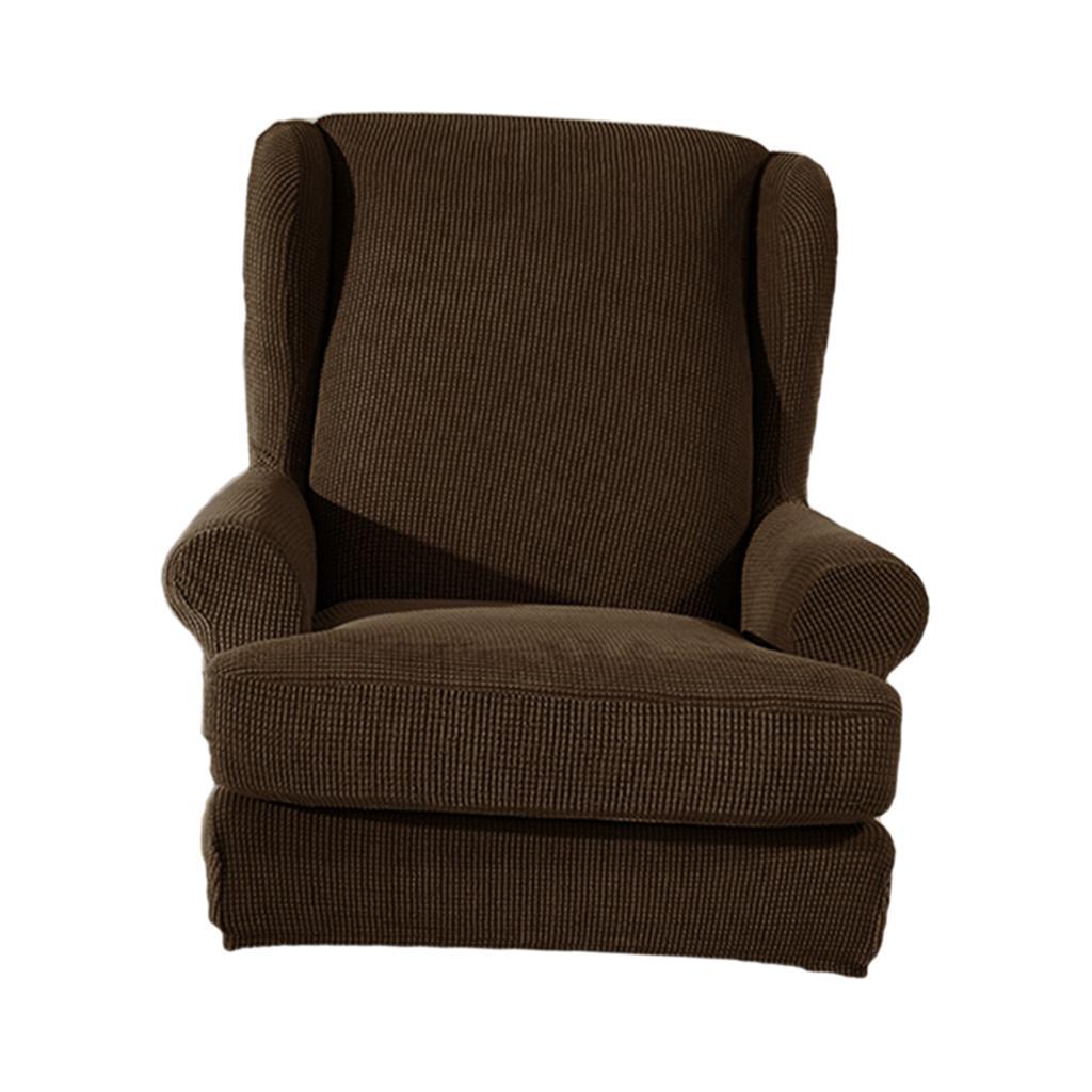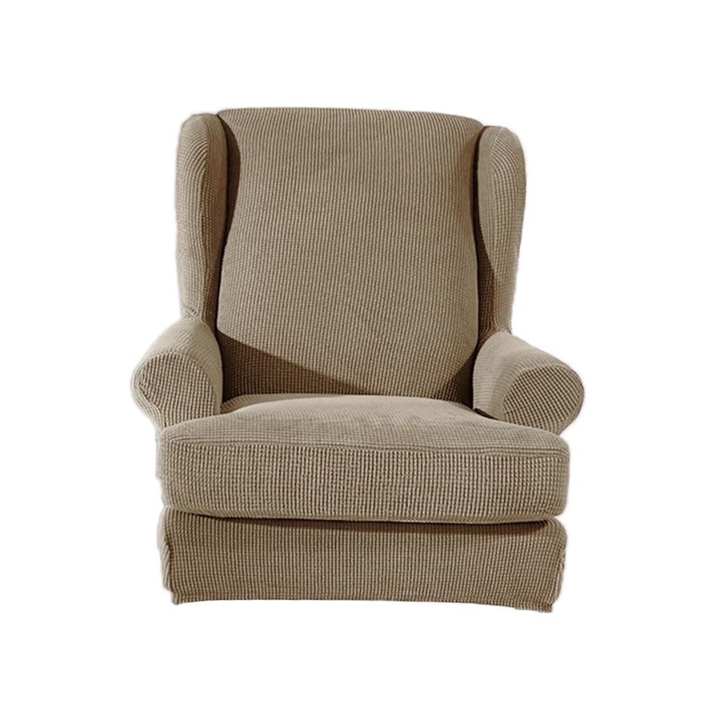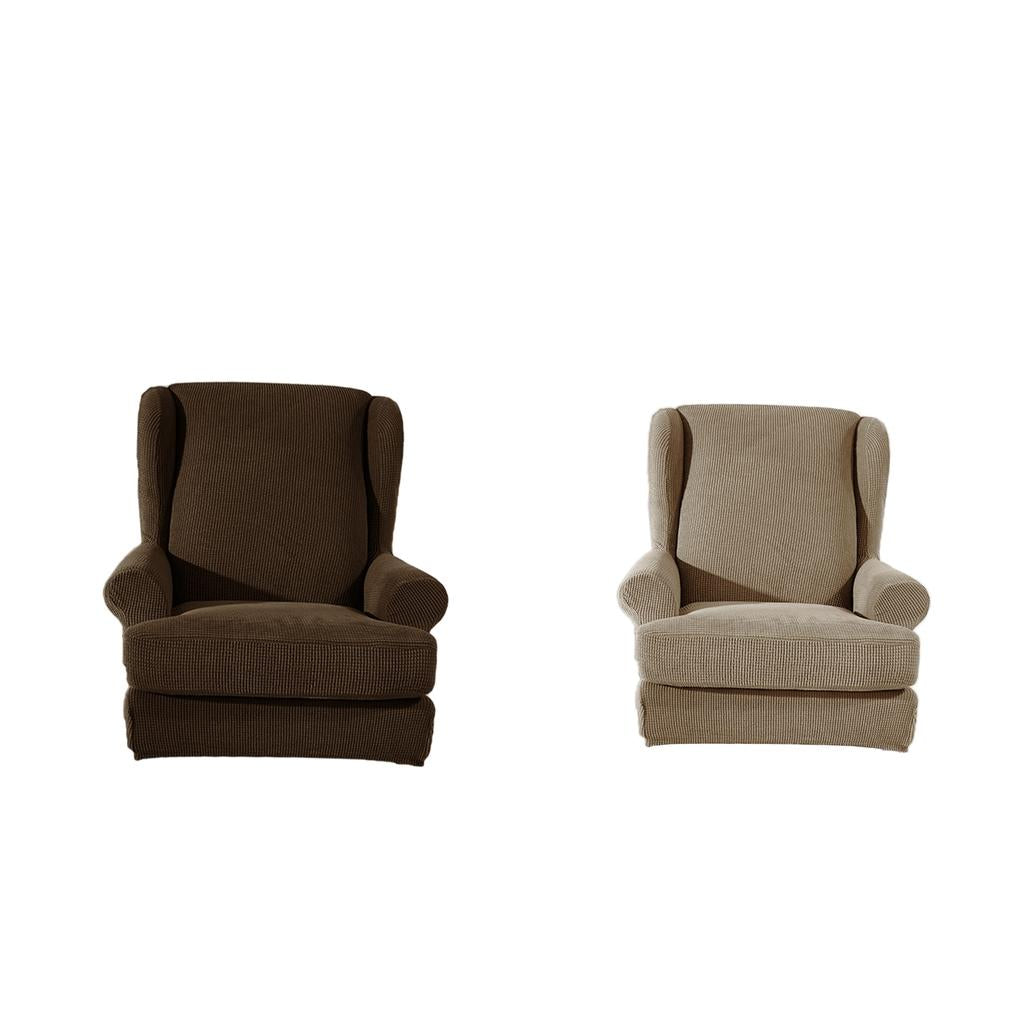Maxbell 2 Set Stretch Wing Back Arm Chair Cover Wingback Sofa Slipcover Sand Coffee