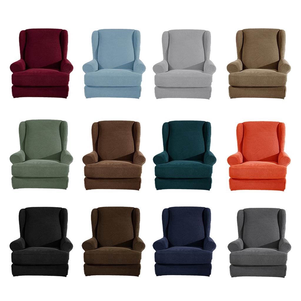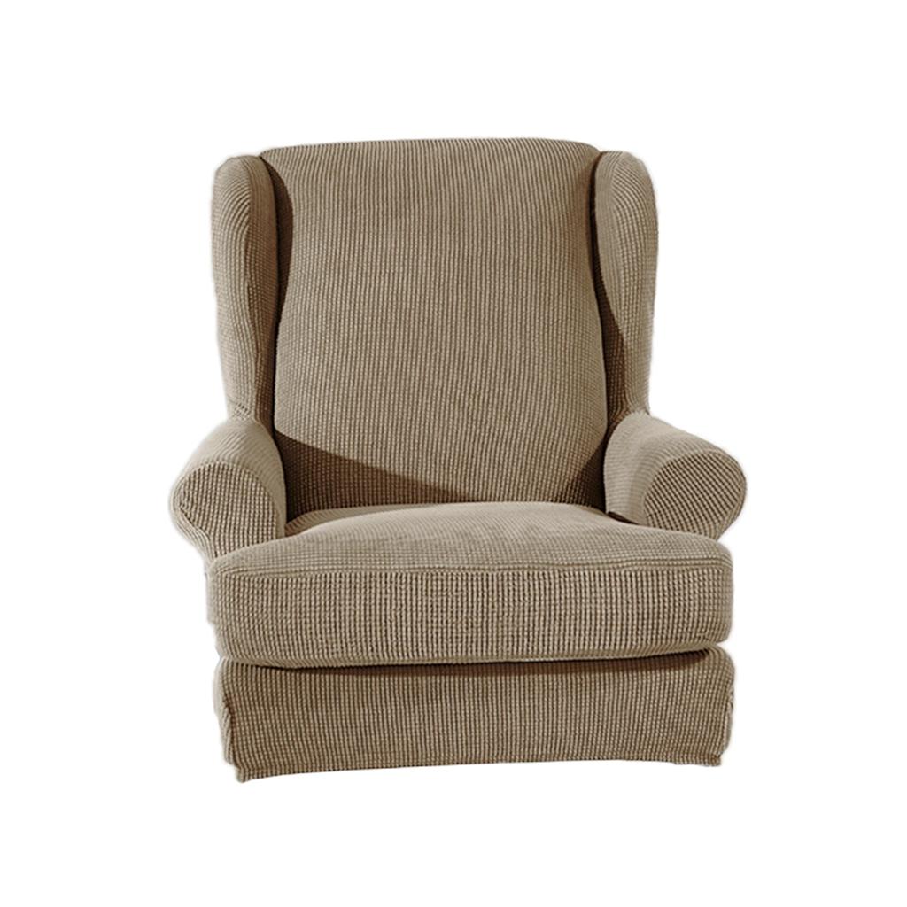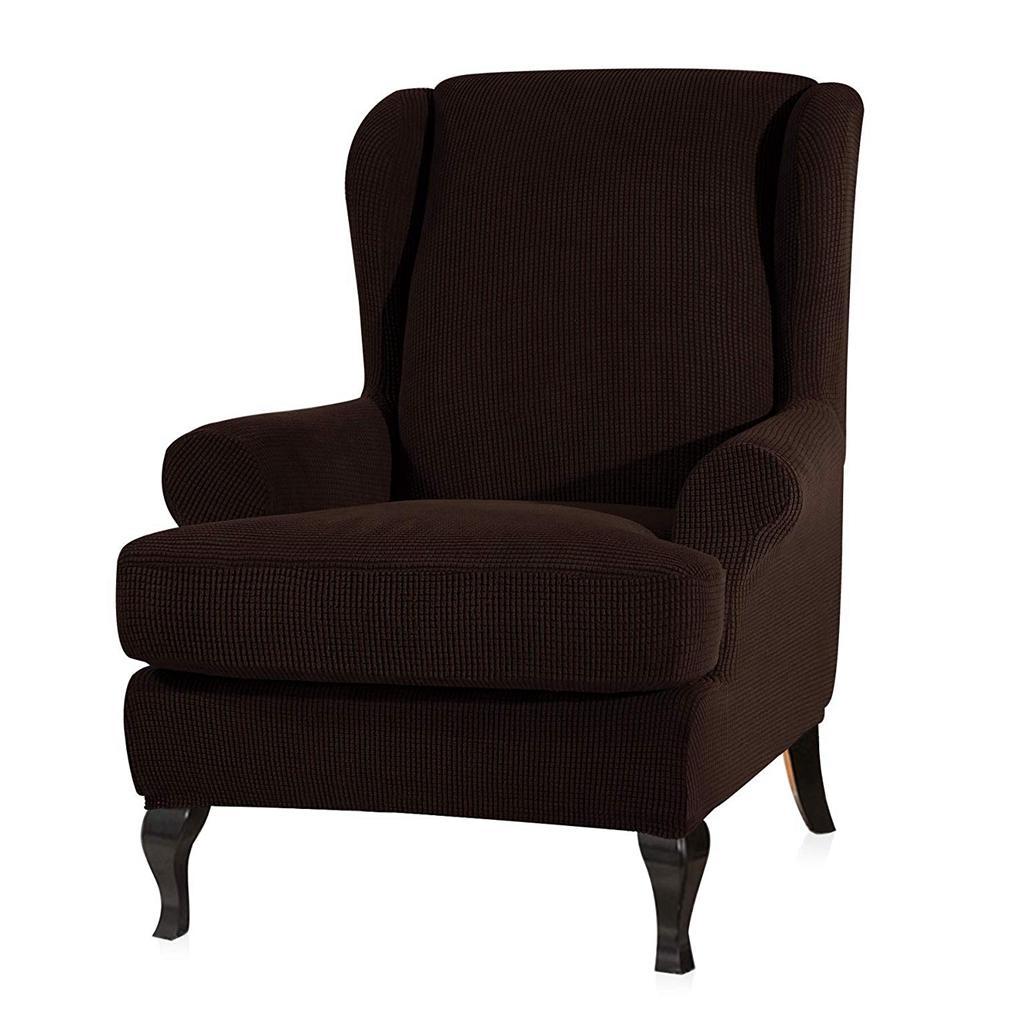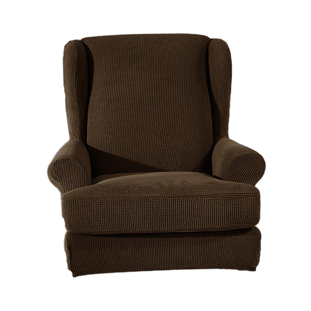 Maxbell 2 Set Stretch Wing Back Arm Chair Cover Wingback Sofa Slipcover Sand Coffee