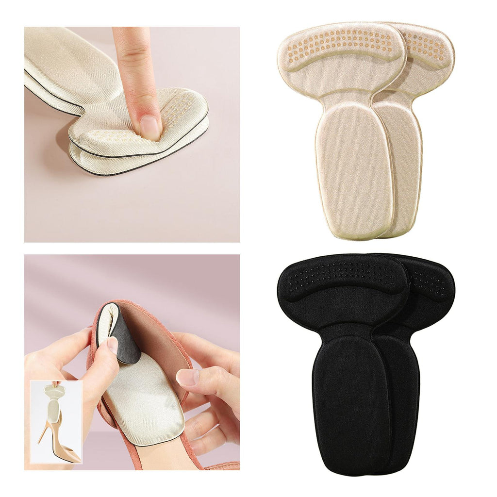 Maxbell 2x Heel Cushion Pads T Shape Shoe Heel Insoles Shoe Pad for Loose Shoes Black