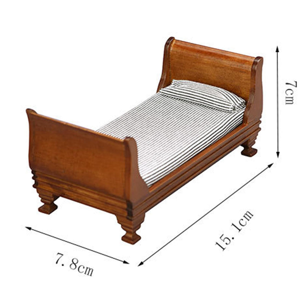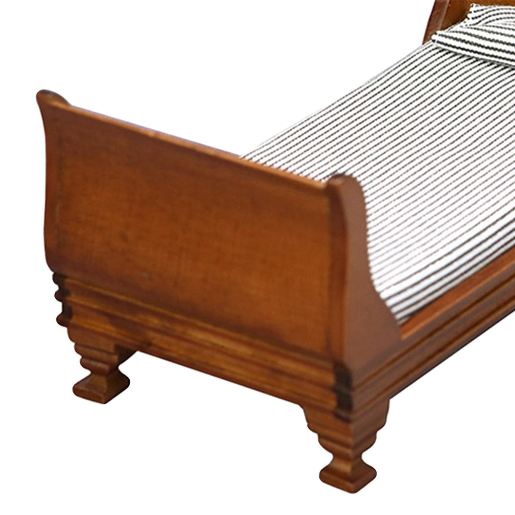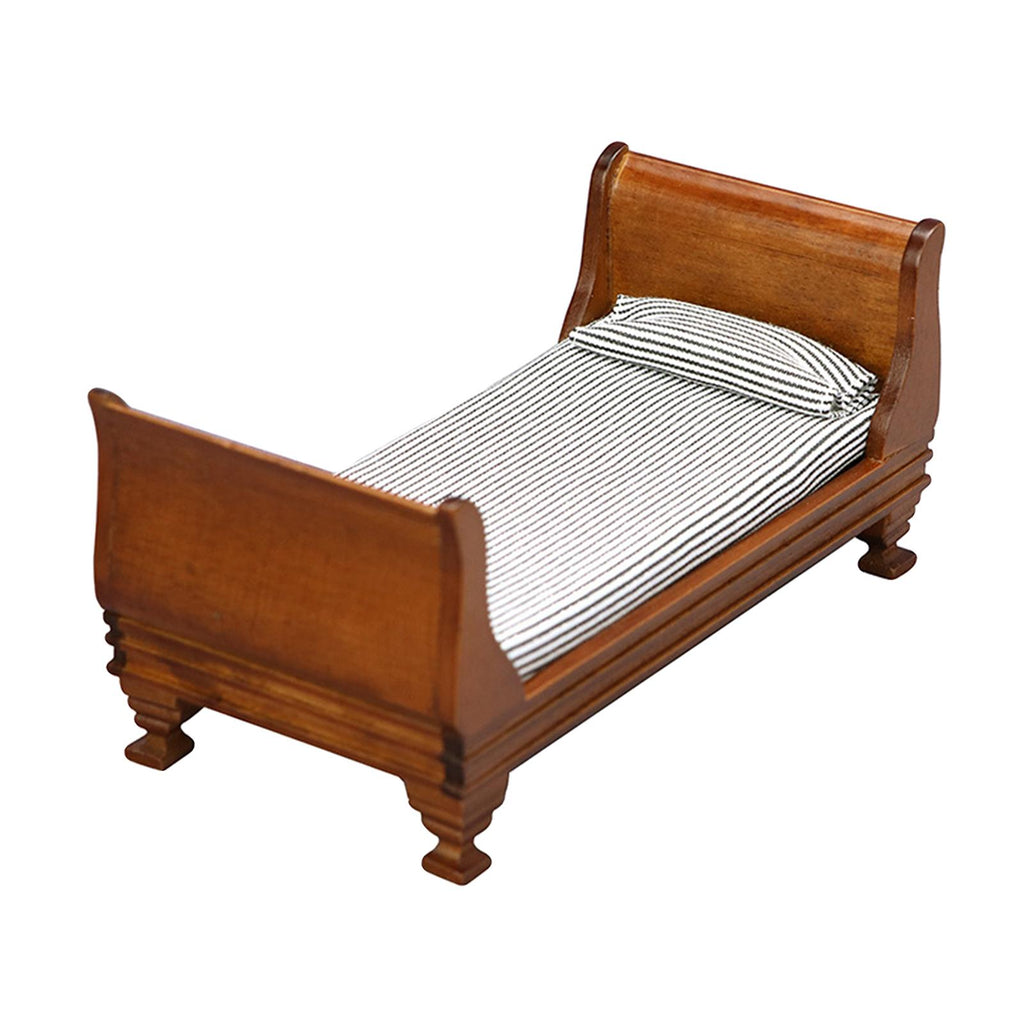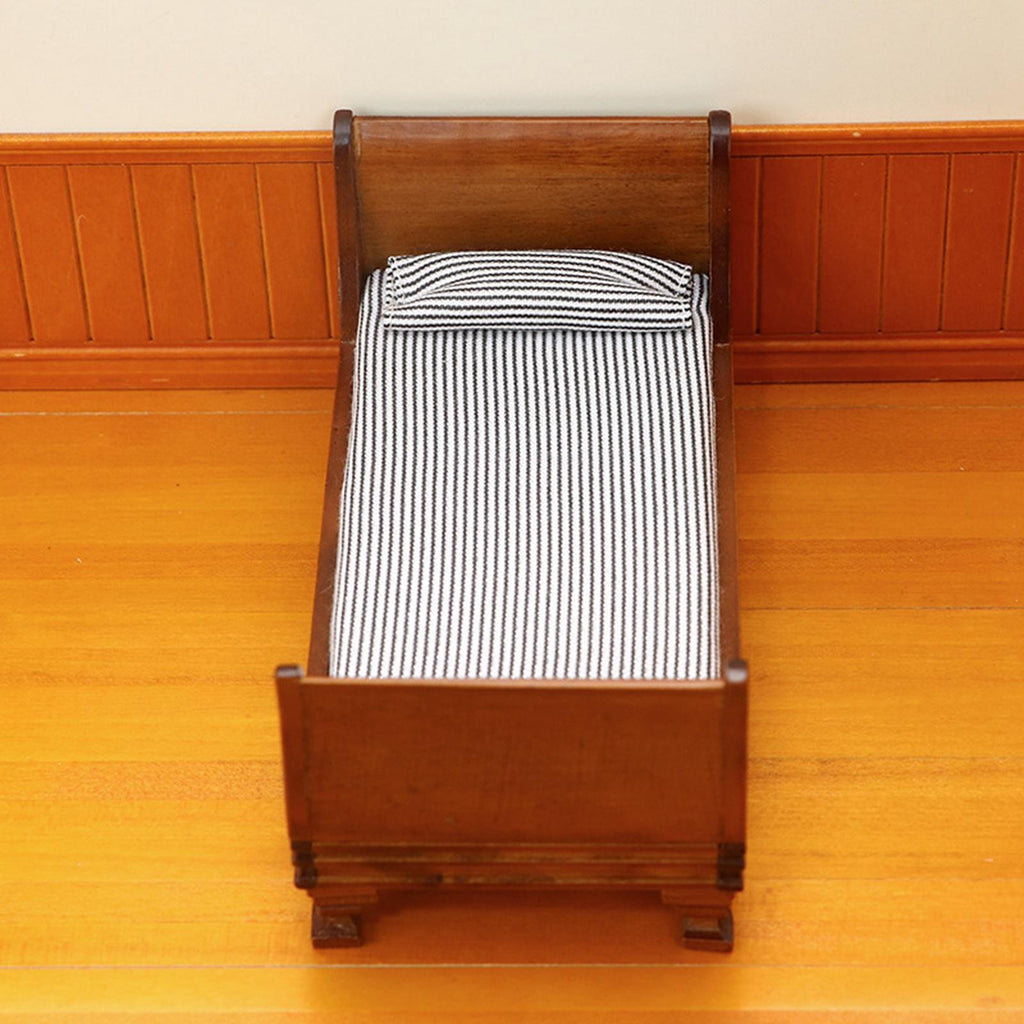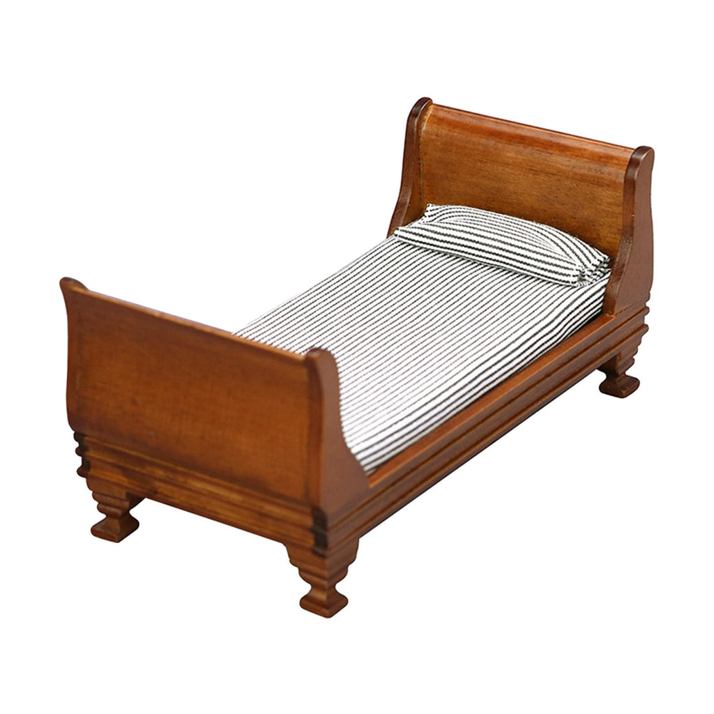 Retro Style 1/12 Scale Single Bed and Rocking Chair Furniture Model Bedroom Set. Including Bed Frame, Mattress and Pillow.