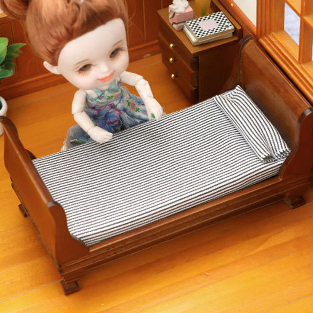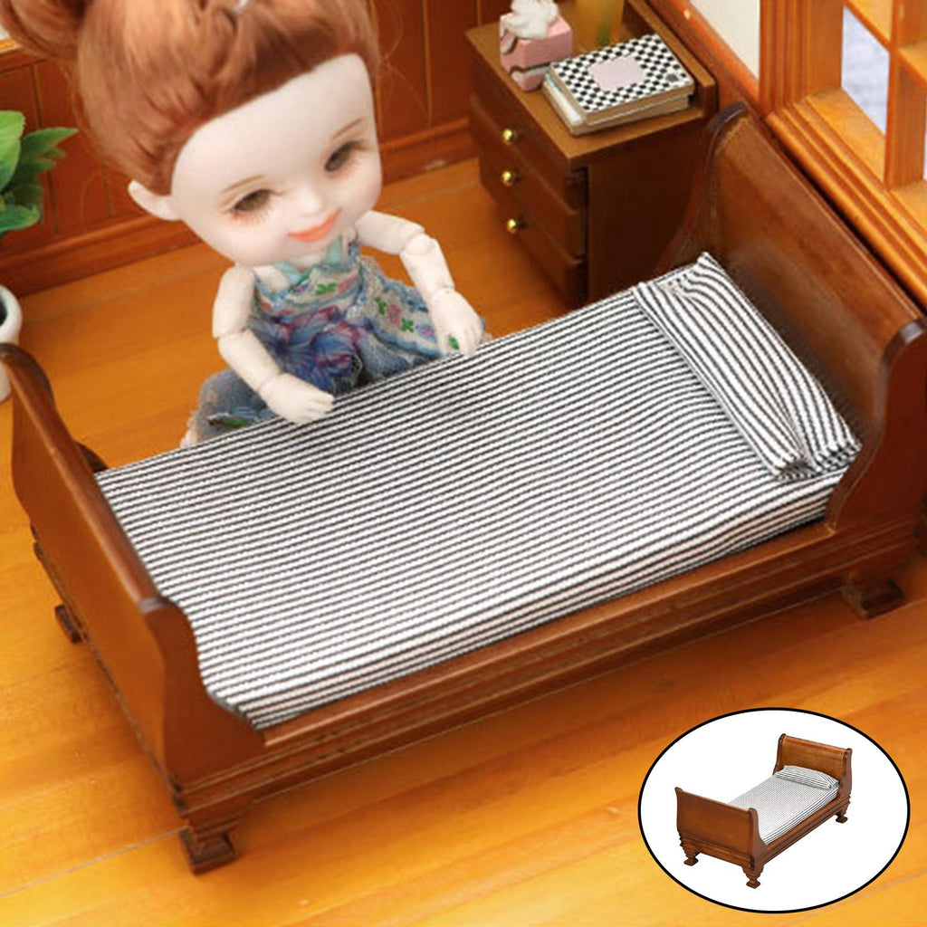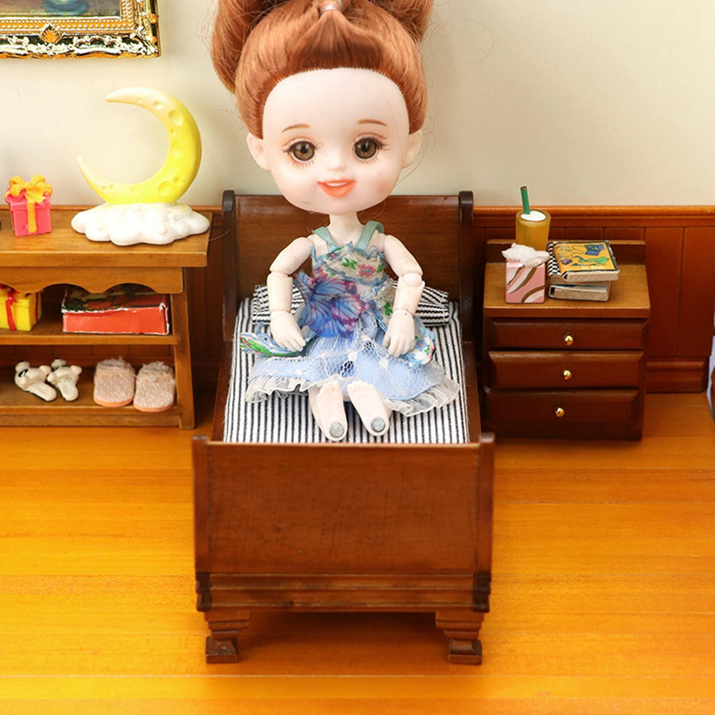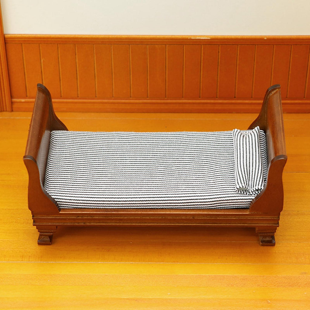 Retro Style 1/12 Scale Single Bed and Rocking Chair Furniture Model Bedroom Set. Including Bed Frame, Mattress and Pillow.