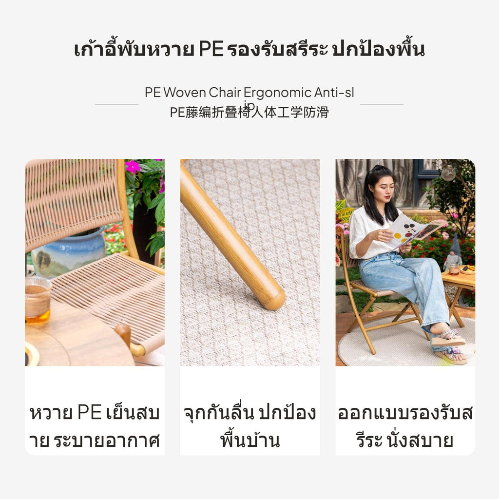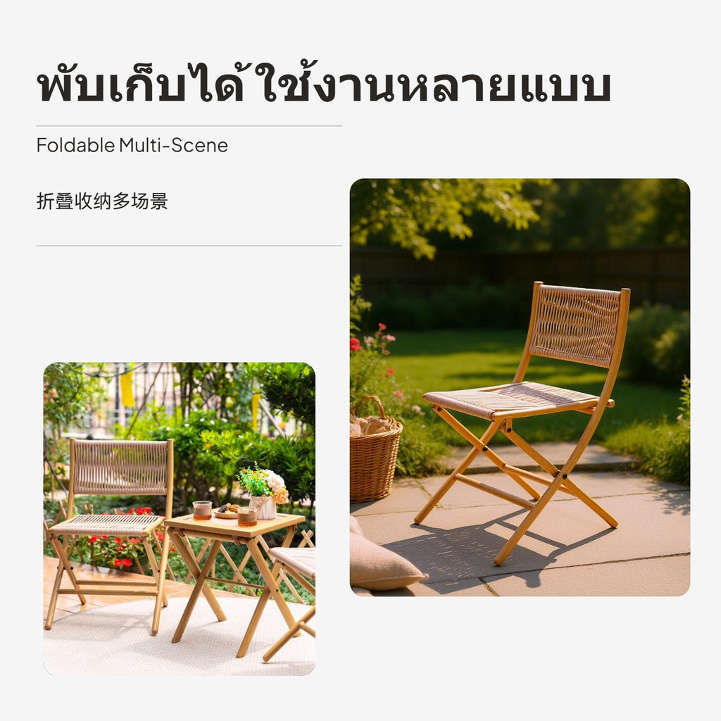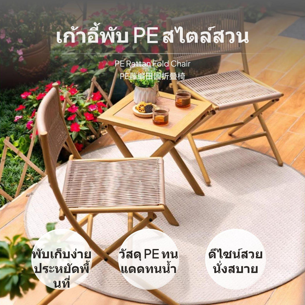 [Perfect for Outdoor and Small Spaces] This 3-piece folding table and chair set combines key features like 'patio furniture', 'balcony tea table', and 'folding chair', making it perfect for gardens, balconies, courtyards, and space-saving homes.[High-Quality Materials] Crafted with sturdy galvanized steel, weather-resistant PE rope weaving, and a wood-grain crystal stone surface, this set provides stable support and a naturally elegant appearance.[Portable & Space-Saving] Lightweight and fully foldable design allows for easy storage and portability, perfect for spontaneous outings or flexible use in restricted areas.[prepared prepared to use Easy Maintenance] No assembly required—unfold and enjoy immediately; polished surfaces make cleaning simple, supporting hassleeffortless everyday use.[Multi-Scene Utility] Enjoy tea, snacks, or informal gatherings on the patio, garden, balcony, or even while camping outdoors; protective foot pads ensure stability and help prevent floor scratches.Specification: