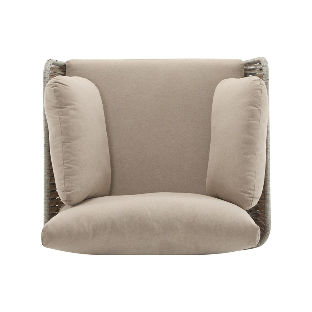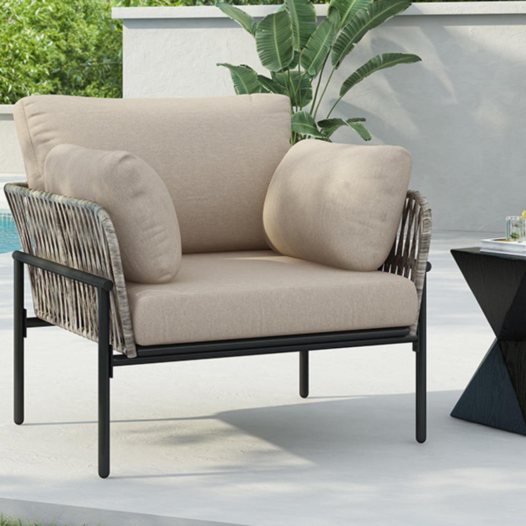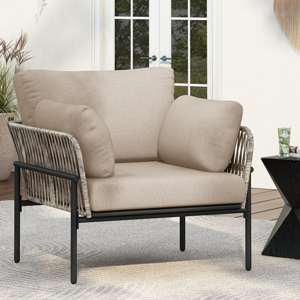 36" Beige Iron Lounge Chair with Rope Weave Design and Plush Cushions,