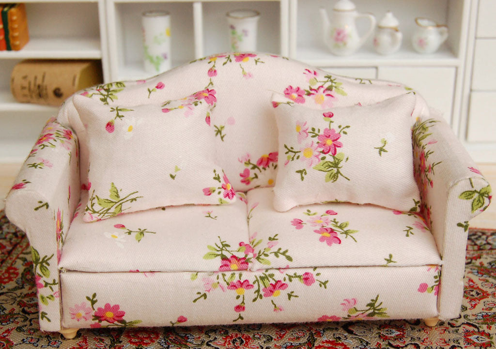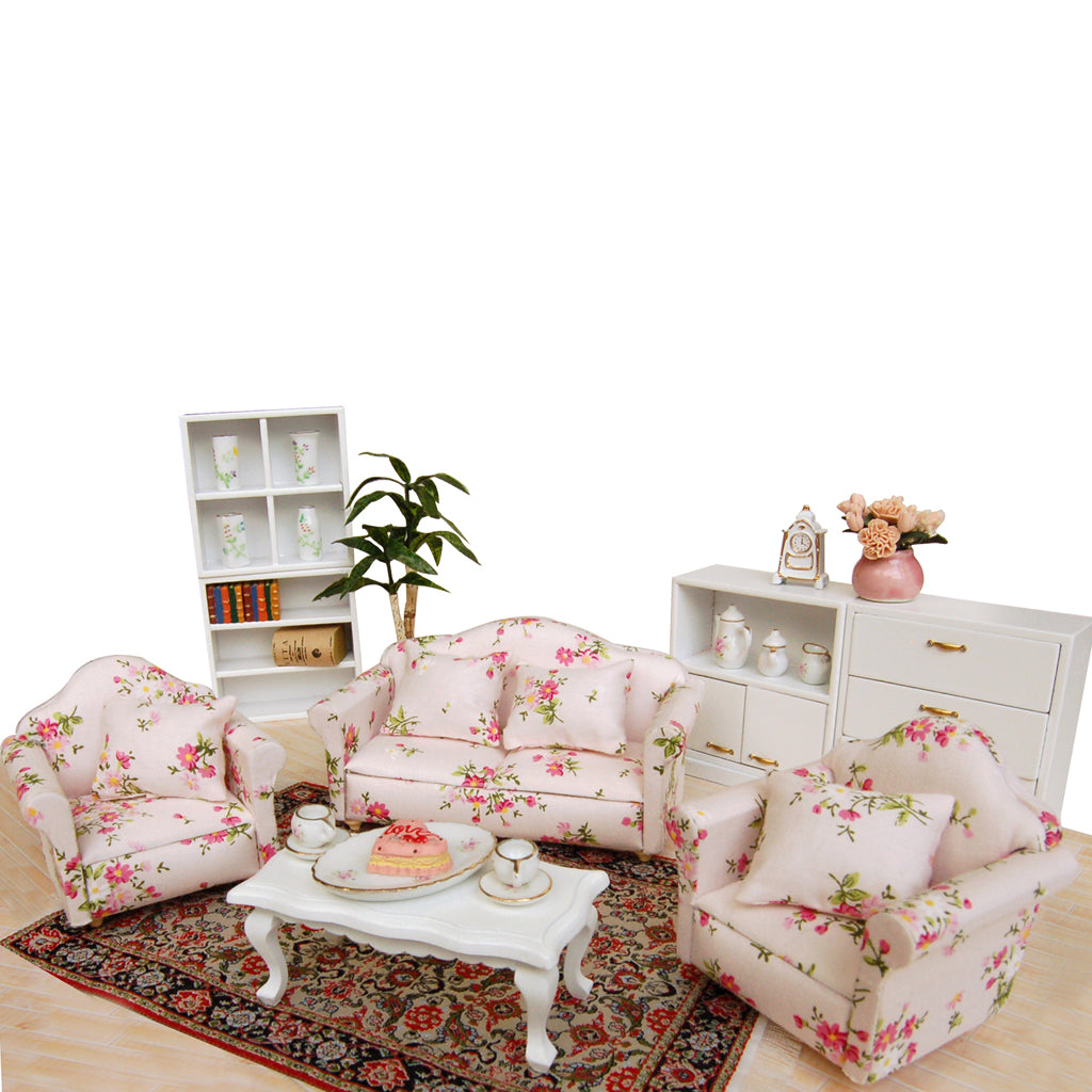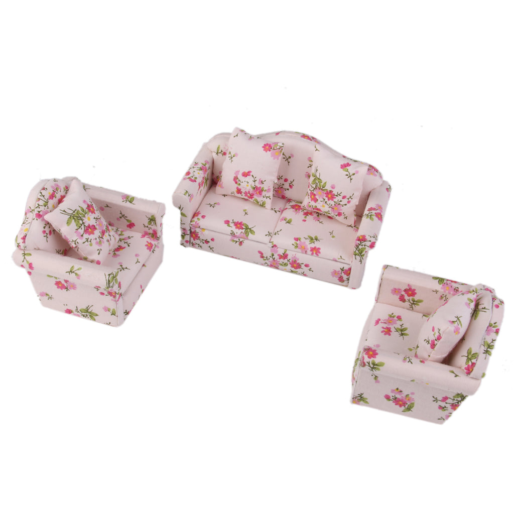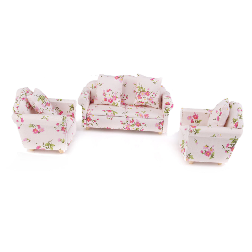 Maxbell 3pcs Dollhouse Miniature Floral Sofa Couch with Pillow Cushions