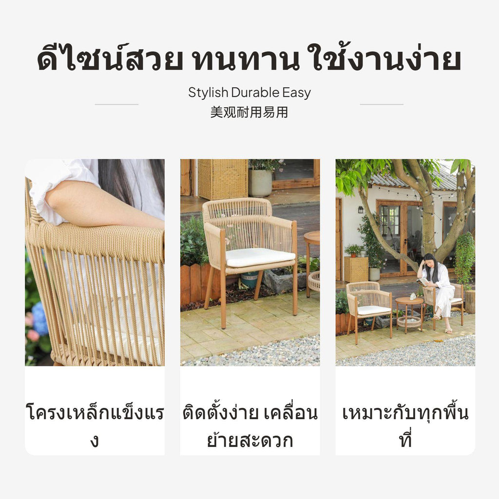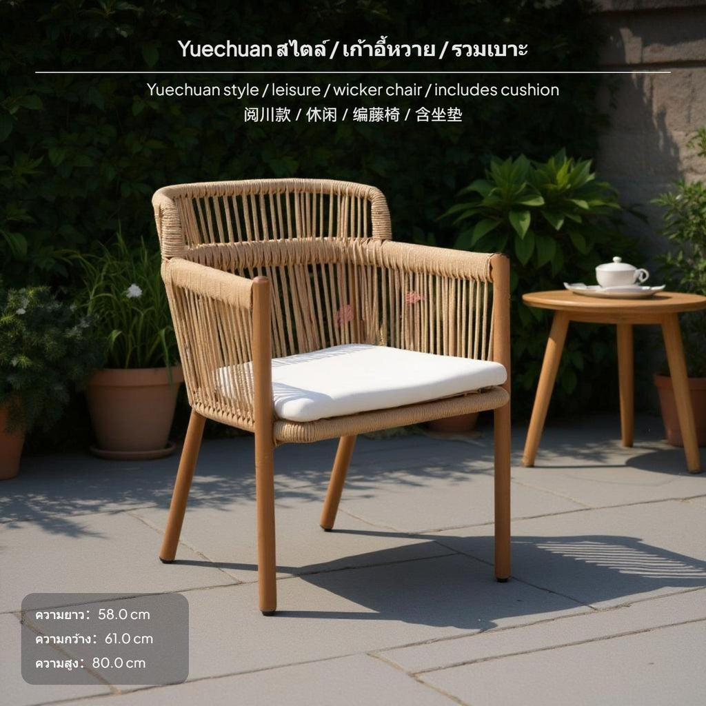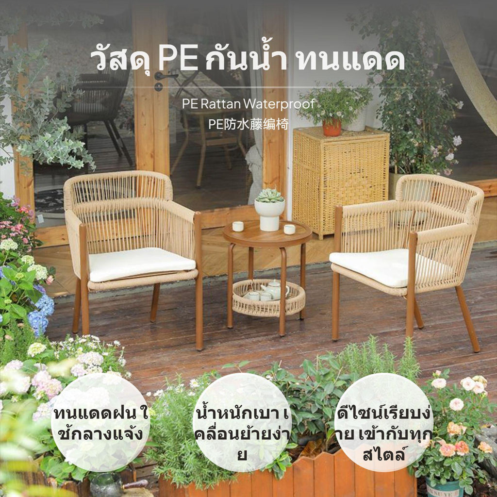 [Adaptable Outdoor Leisure] This 4-chair and 1-table set gives you a stylish multiseating arrangement for your patio, garden, or balcony, featuring wicker chairs and a matching coffee table designed for relaxation and gatherings.[Water-Resistant PE Rattan] The woven PE rattan resists sun and rain, maintaining its new-looking look through changing seasons, while the sleek metal frame ensures enduring reliability outdoors.[Comfortable & Breathable Design] Each ergonomically shaped chair offers superior comfort and breathability for extended sitting, making it perfect for outdoor or indoor leisure spaces.[Easy Maintenance & Cleaning] With a polished glass surface and wipeable PE rattan surface, this set is simple to keep clean, allowing you to enjoy low-maintenance hosting and frequent use.[twentieth-century-century-inspireddecade Artistic feel] Featuring a distinctive twentieth-century-century-inspireddecade design and artistic woven texture, this collection brings aesthetic appeal to outdoor cafes, terraces, or home gardens for family chats or sociable tea gatherings.Specification: