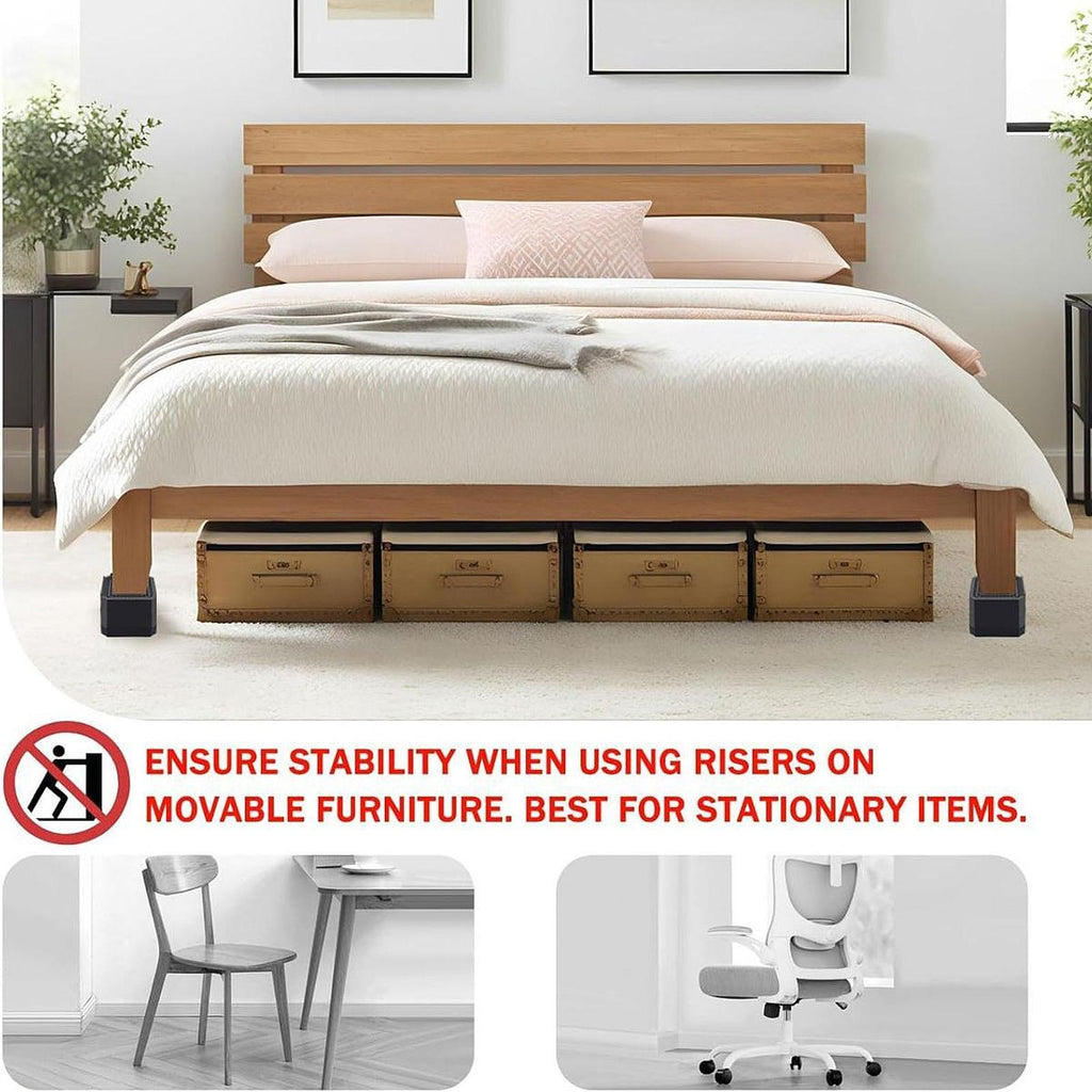 【Versatile Design】: These Bed risers are crafted from quality pp and tpu, making them suitable for heavy furniture like beds, sofas, cabinets, and tables