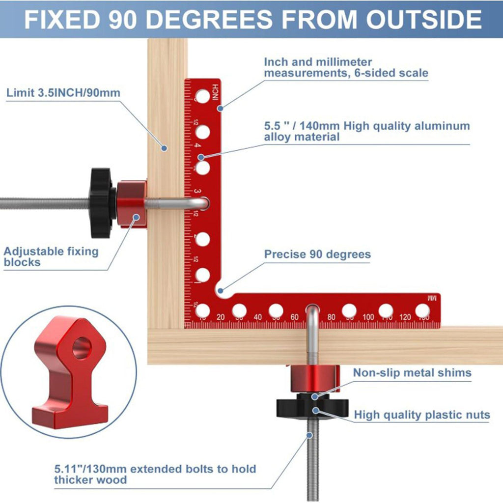 【Professional square tool】: Woodworking right angle clamps can be used with clamps to check and position the joints of the boards and to connect or weld at right angles