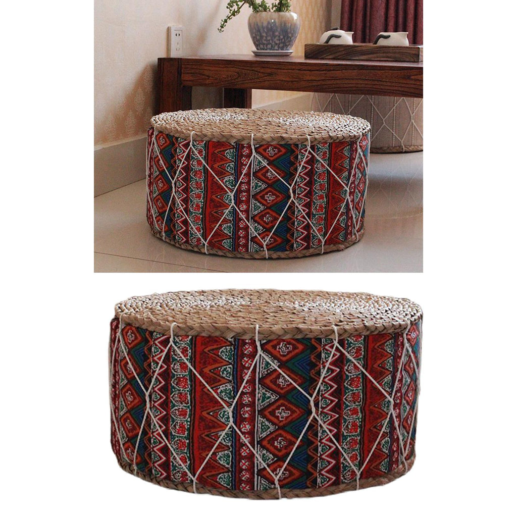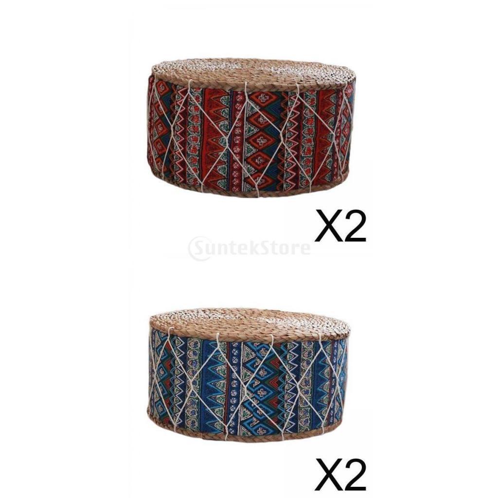 4pcs Handmade Straw Futon Floor Pillow Meditation Stool Pouf Bohemia