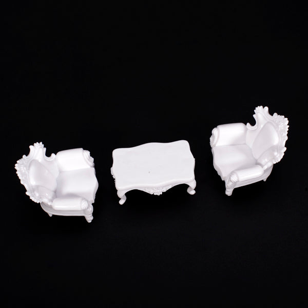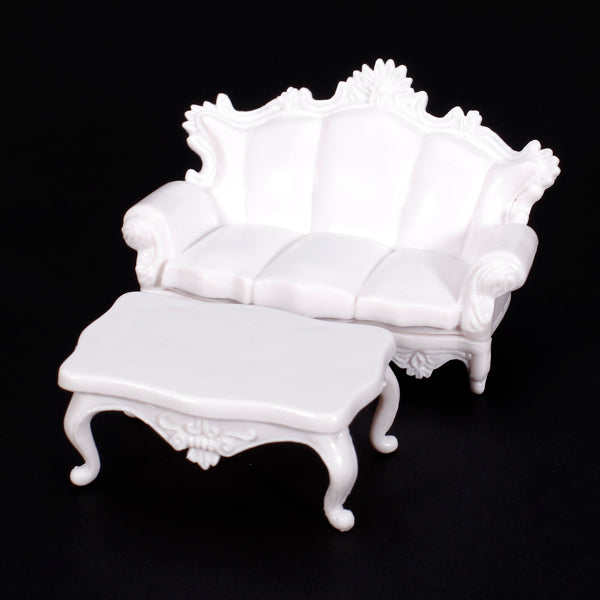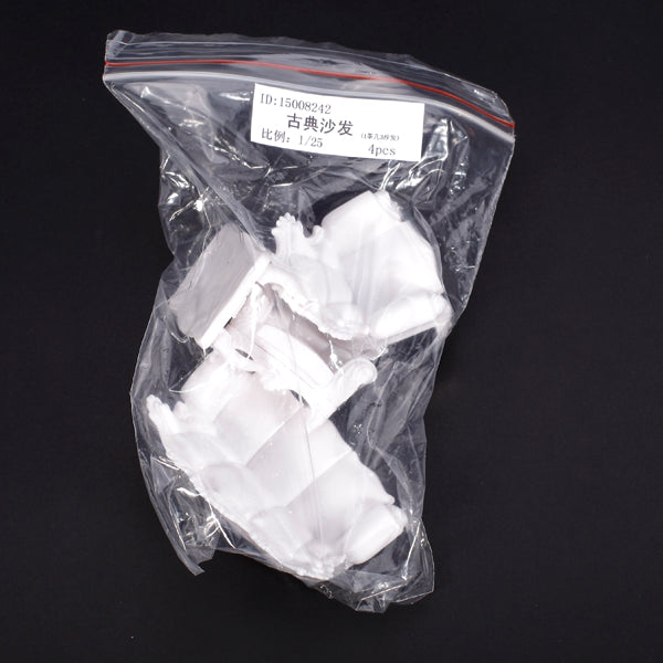 This 1:25 sofa set model is very delicate and high imitation designed and crafted. This 4pcs sofa set includes two single seat sofas, a tea table and a settee. ABS plastic material makes this sofa set handy and portable. This sofa set model is a great decoration for your doll house and can be used as indoor scenery model.
