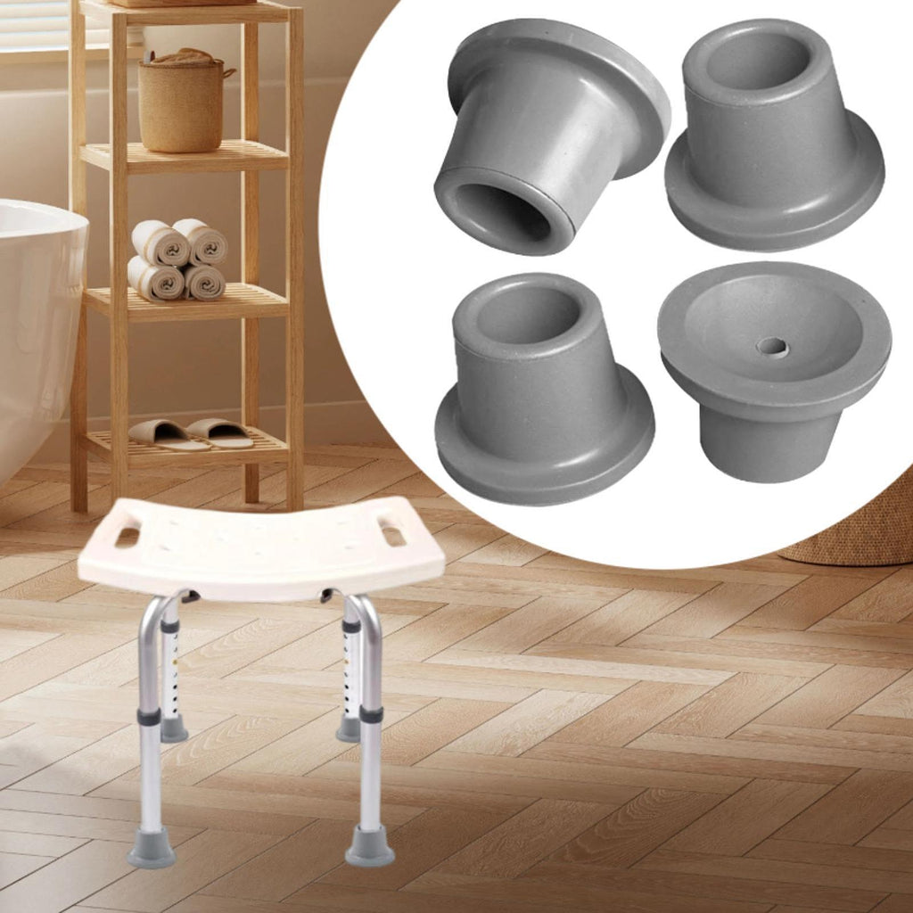 【Versatile Application】: Suitable for a variety of furniture pieces, these rubber feet can be used on most shower chairs, commode chairs, walking sticks, and more