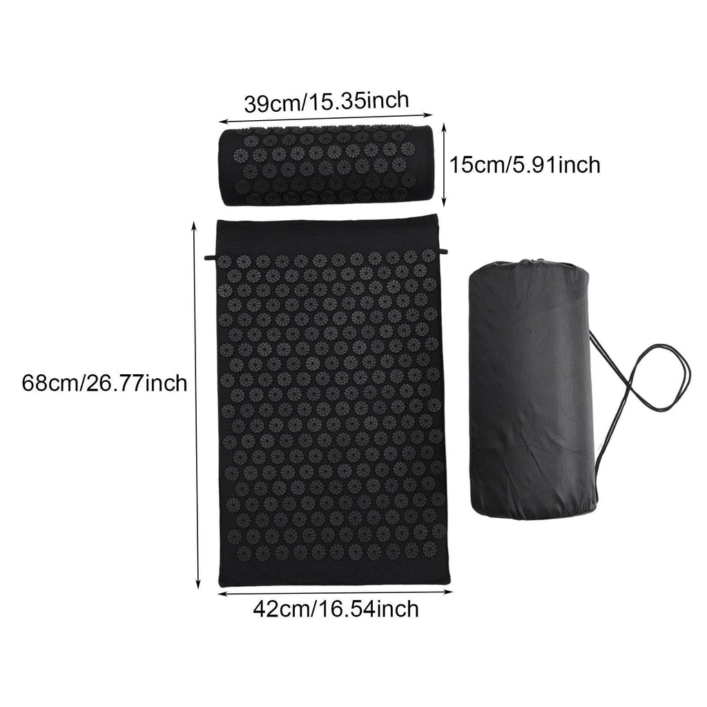 【Dimensions】: The acupressure pillow measures 39 cm x 15 cm x 10 cm/15.35 inch x 5.91 inch x 3.94 inch, while the mat is sized at 68 cm x 42 cm x 2 cm/26.77 inch x 16.54 inch x 0.79 inch, providing ample space