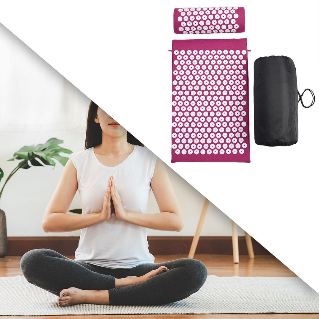 Maxbell Acupressure Mat and Pillow Set Premium Accupressure Pad for Leg Hip Shoulder Rose Red White
