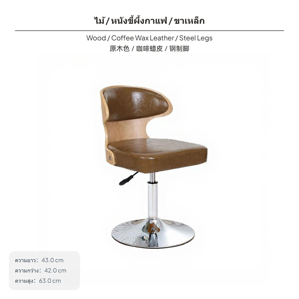 Adjustable rotating Chair, No-supportless Modern Study Computer Chair, Home Desk Stool Wood Coffee Wax Lthr Steel Legs