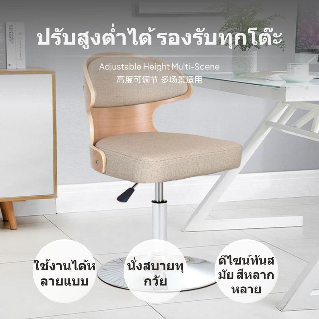 Adjustable rotating Chair, No-supportless Modern Study Computer Chair, Home Desk Stool Wood Khaki Linen Steel Legs