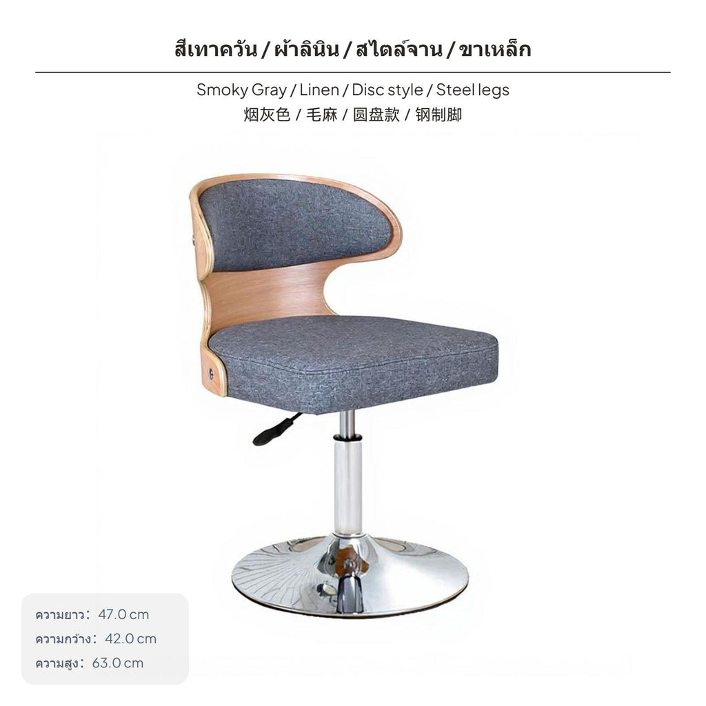 Adjustable rotating Chair, No-supportless Modern Study Computer Chair, Home Desk Stool Wood SmokyGray Linen Steel Legs