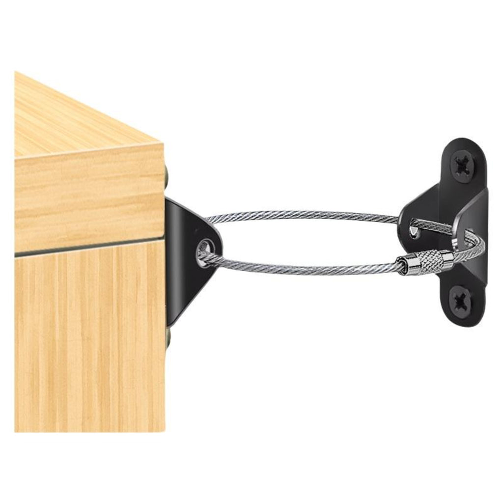Anti-Tip Furniture Anchor, No-Drill Straps, Child Proofing, Secure Cabinet, Shelf Unit, Home Black Steel Wire