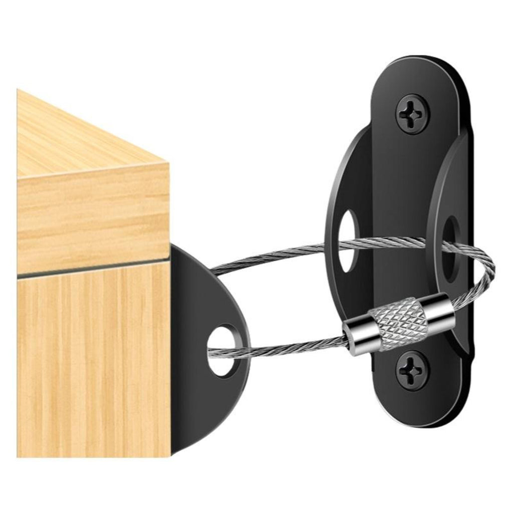 Anti-Tip Furniture Anchor, No-Drill Straps, Child Proofing, Secure Cabinet, Shelf Unit, Home Black Wide