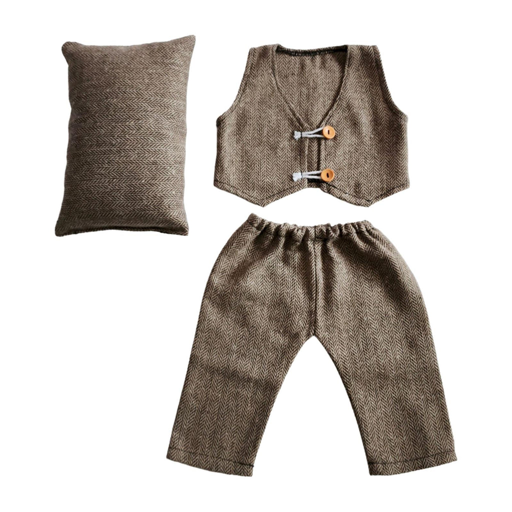 Maxbell Baby Photography Props Baby of Pillow Vest Pants for Party Holidays Anniversary Khaki