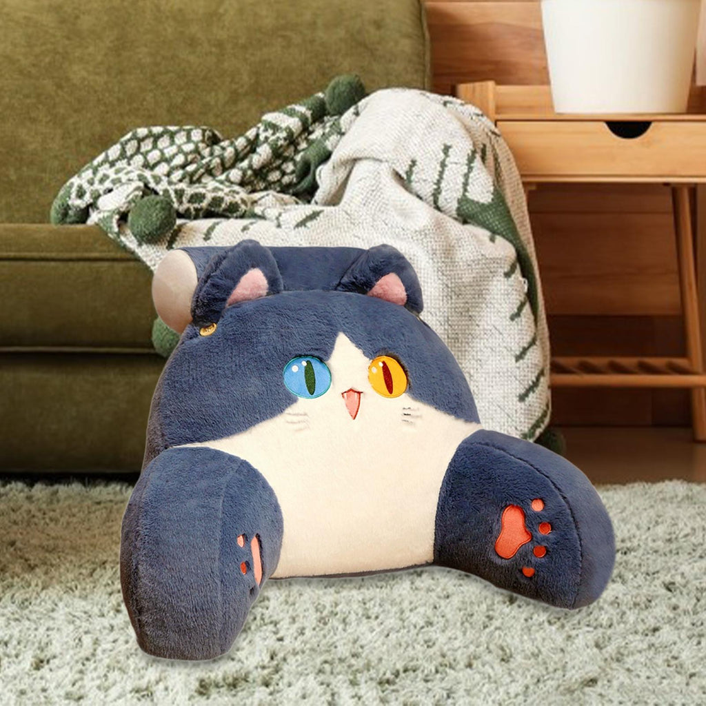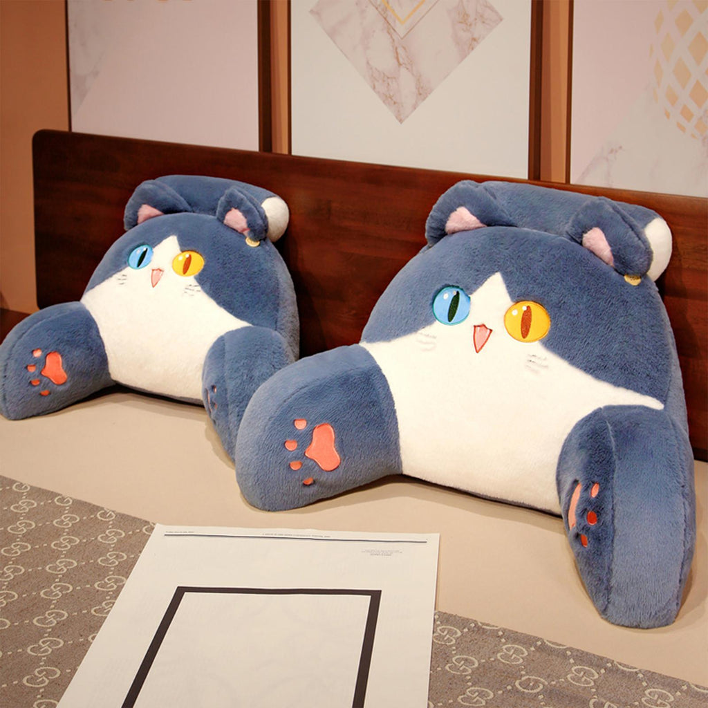 Maxbell Back Rest Pillow Breathable Cute Reading Pillow for Watching TV Gaming Couch Blue Cat Shape