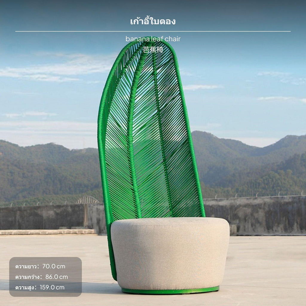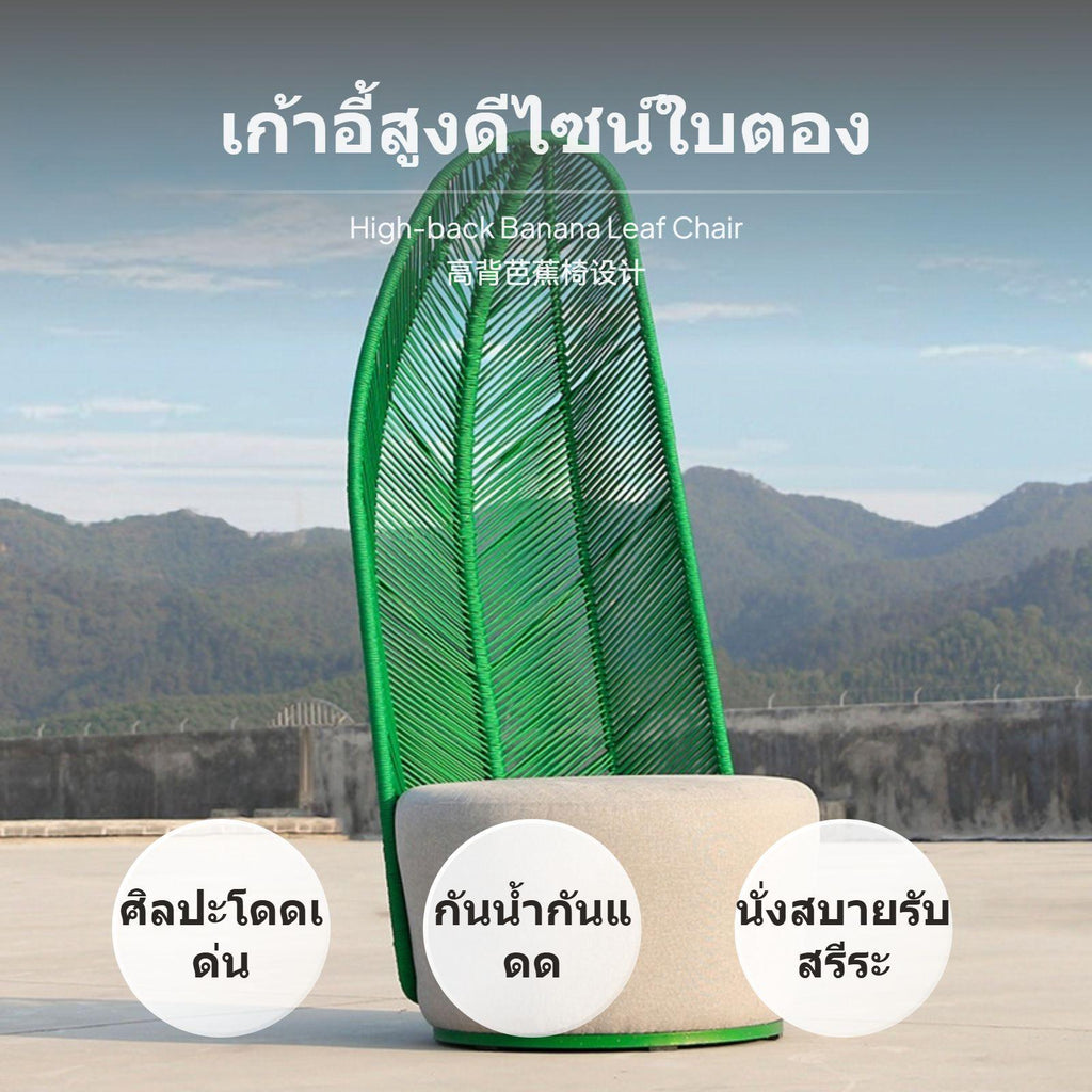 Banana Frond High rear Outdoor Sofa, Wicker Accent Chair, Designer Patio Furniture, Single Seating for Courtyard & Hotel