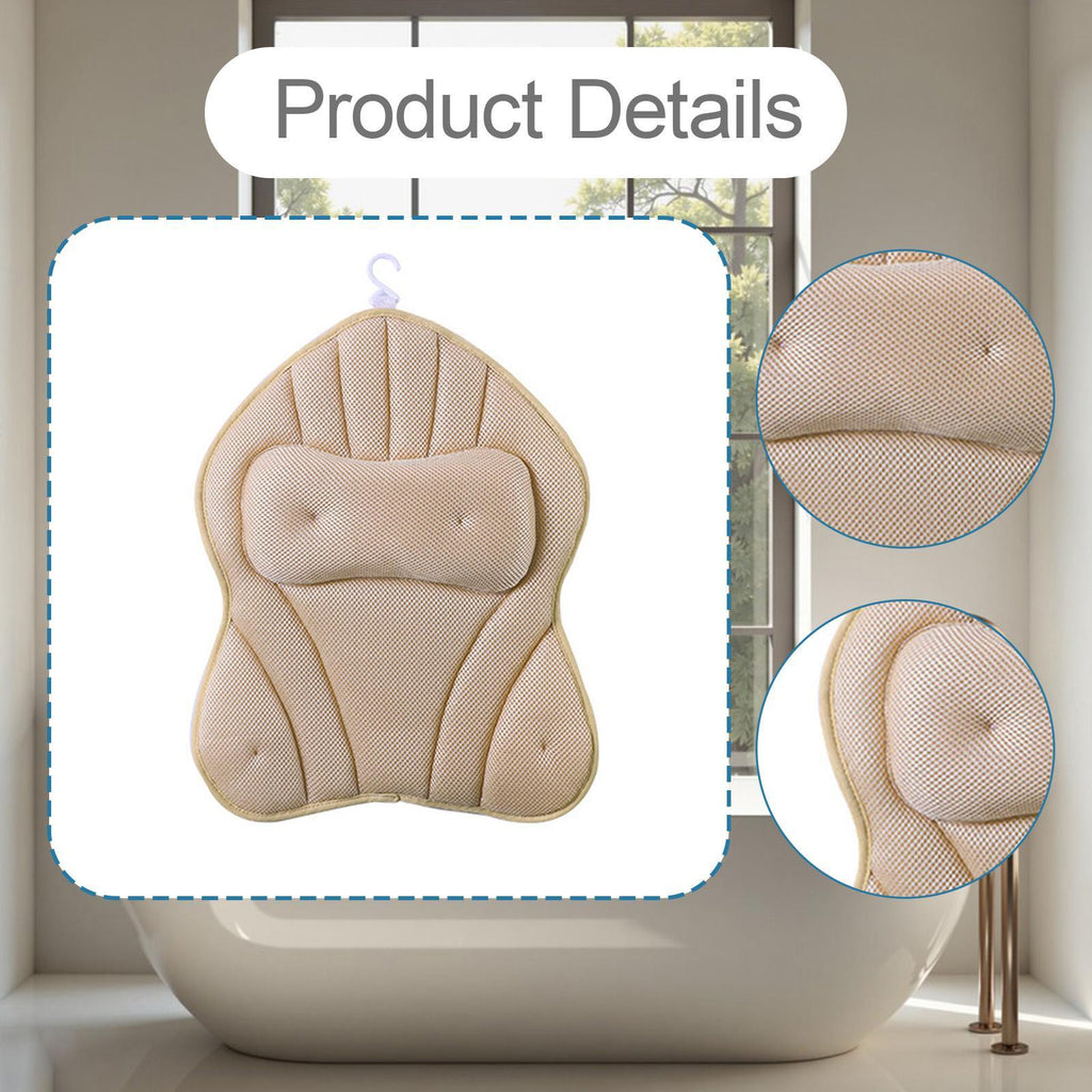 Maxbell Bathtub Pillow Headrest Pool Machine Washable Breathable Bathing Bath Pillow Khaki