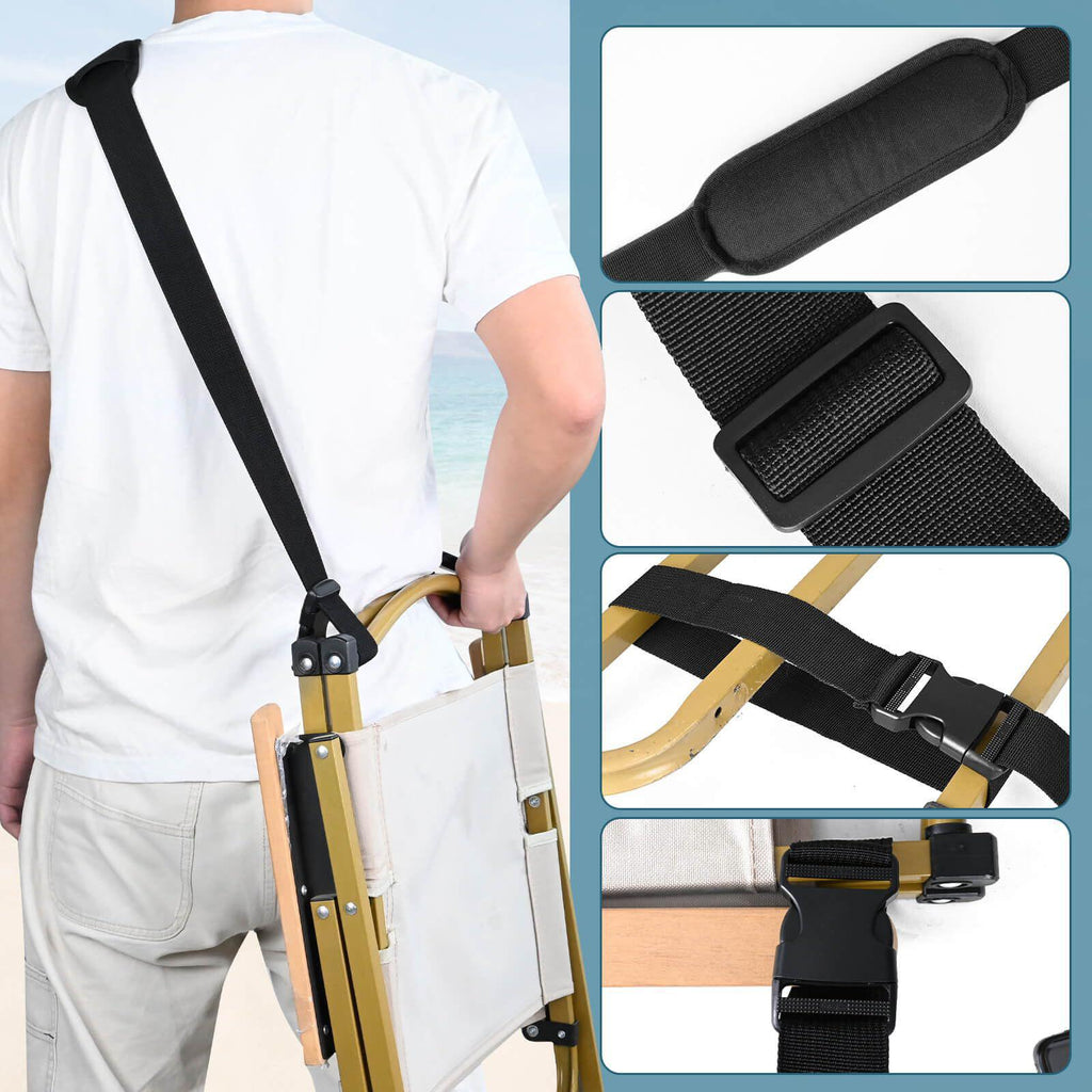 - 【Carry More Comfortably】: This chair carrier strap features buckle design to help you connect and disconnect quickly, saving time and effort; At the time, it comes with a shoulder pad, making you more comfortable when carrying