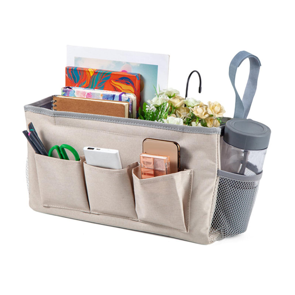 Bedside Pouch Storage Bag Book Keys Organizer Pocket for School Sofa Bedroom Beige