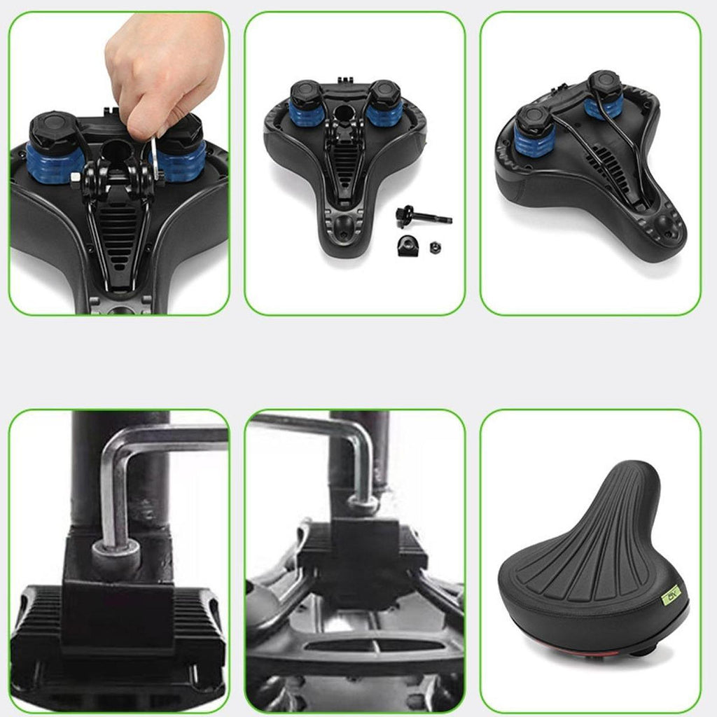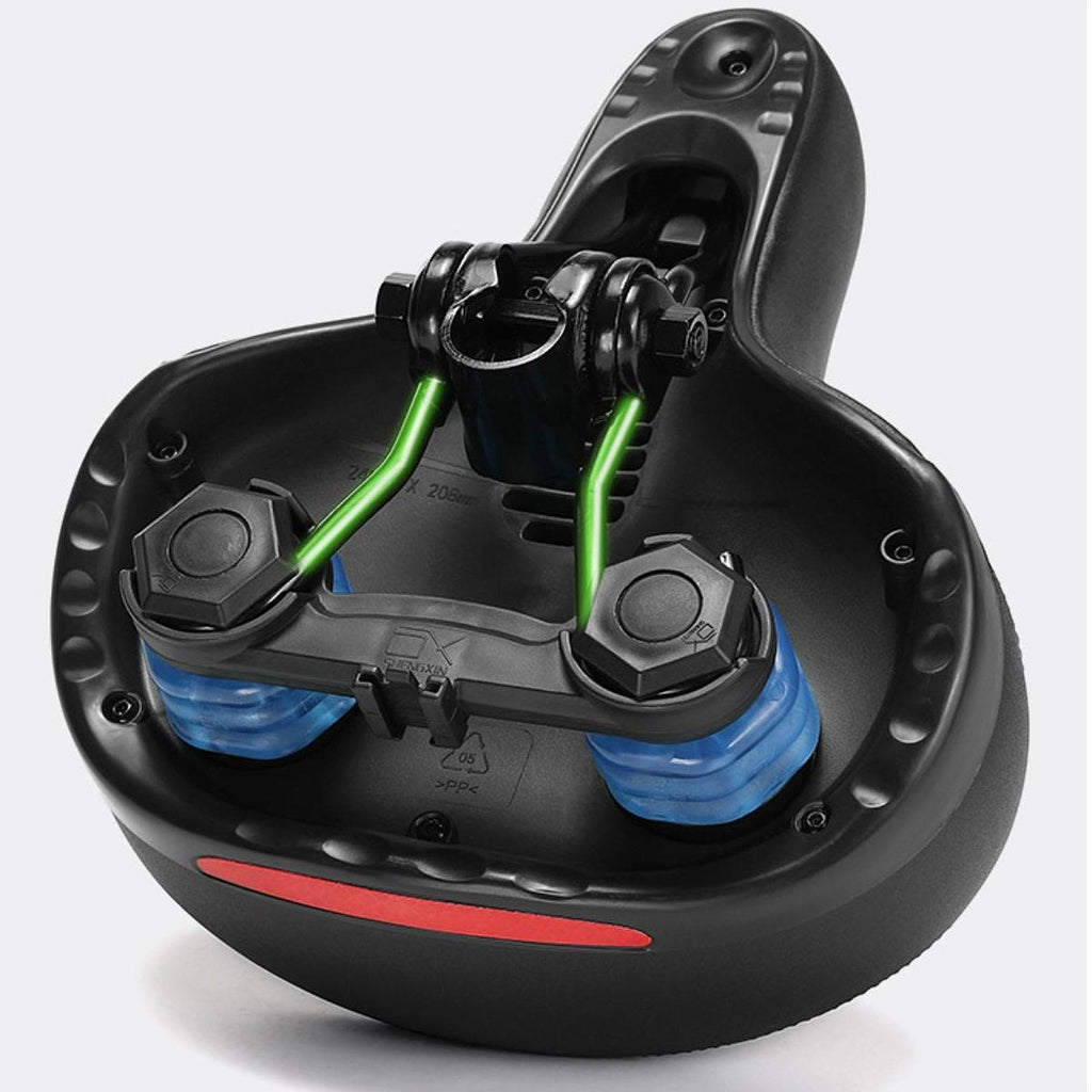 - 【Enhanced Comfort】: Featuring built in springs and sponge material, this Shock Absorbing Bike Saddle effectively absorbs shocks for a smoother ride over bumpy terrain