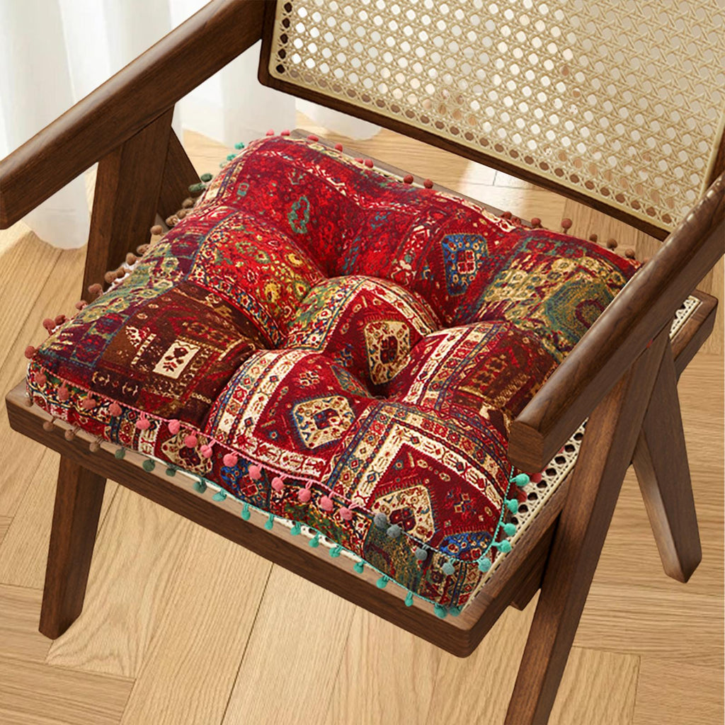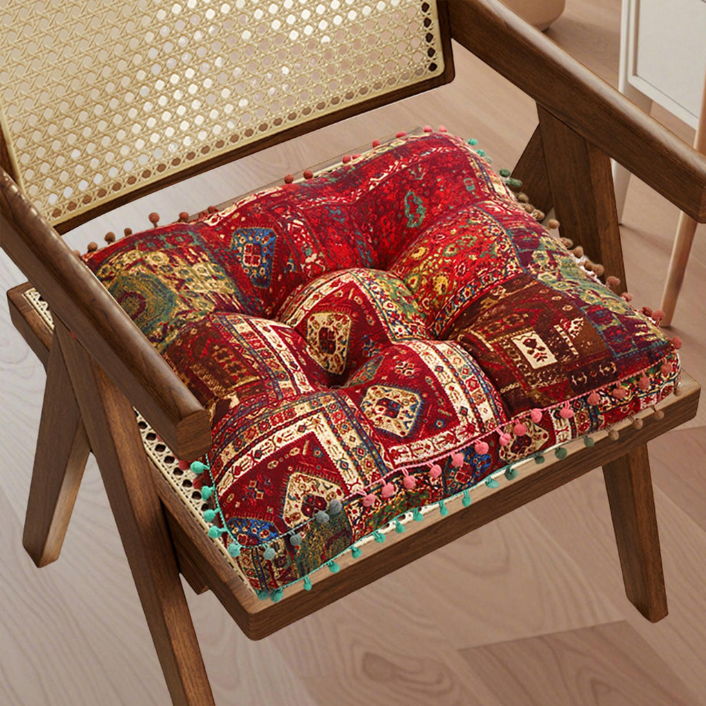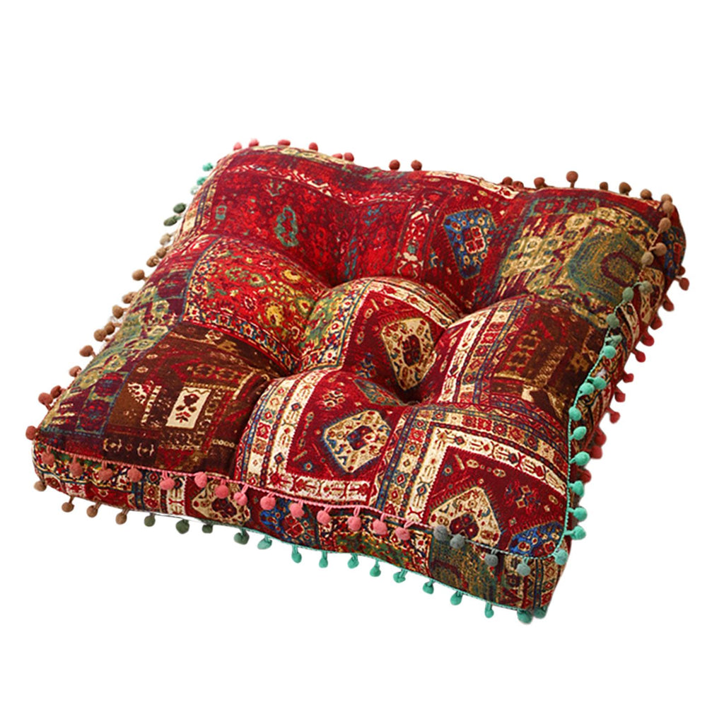 Maxbell Boho Chair Cushion Tatami Living Room Cafe Chair Pad Versatile Soft Non Slip red 42x42x8cm
