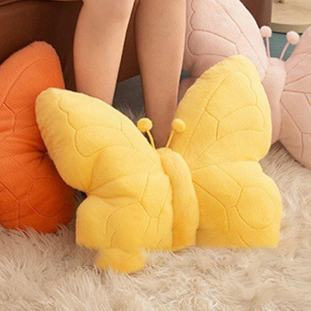 Maxbell Butterfly Shaped Throw Pillow Gift Comfortable Cute for Indoor Bed Work Room Yellow