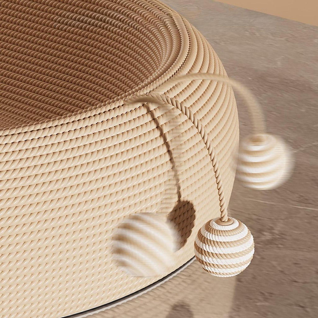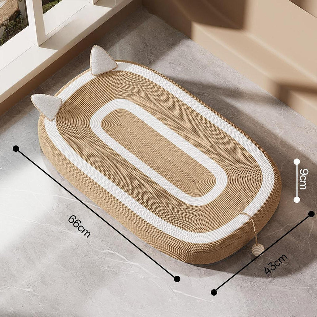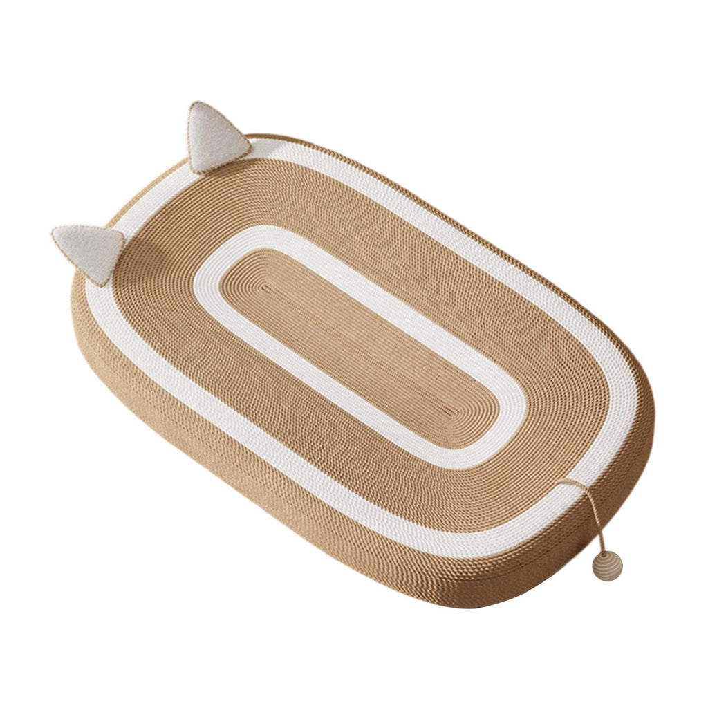 【Interactive Lounge Chair】: Featuring an oval shaped bed, this scratcher doubles as a lounge chair where cats can scratch and relax. It includes an engaging toy ball to attract your pet's attention, making it a wonderful place for lounging like on a bed or sofa