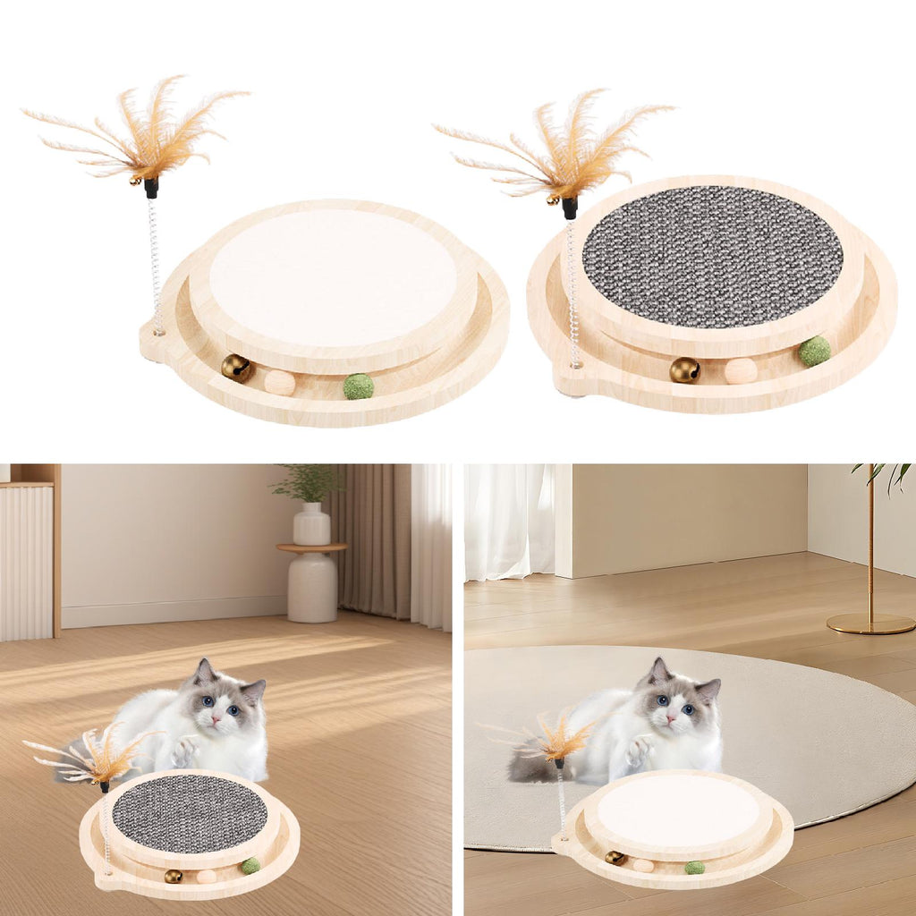 【Interactive Play Experience】: Featuring a spring teaser wand and a track with three moving balls, this Cat Scratching Board offers an engaging playtime experience that keeps your cat active and entertained. It also helps in honing their skills