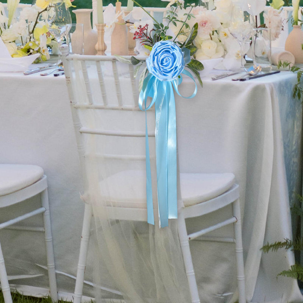 Maxbell Chair Back Flower Elegant Wedding Chair Decor for Ceremony Birthday Backdrop blue