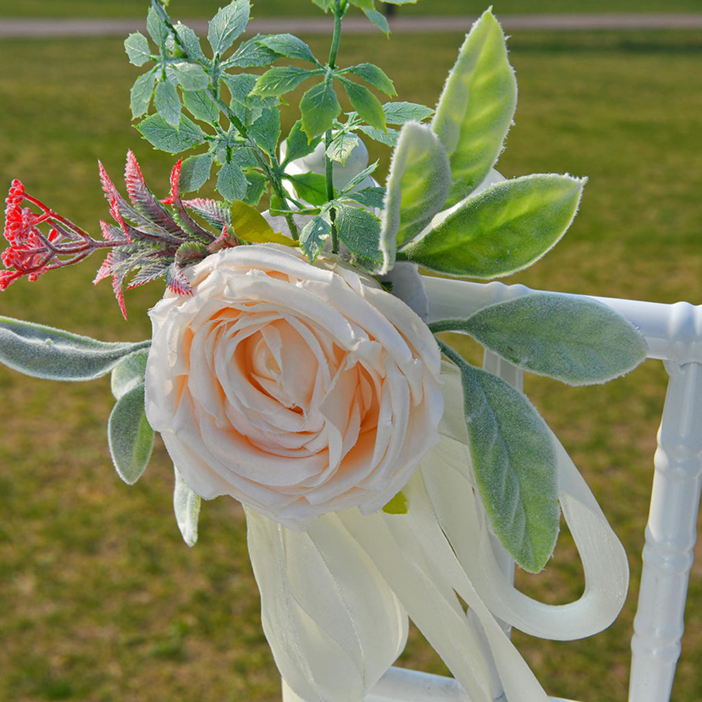 【Durability】: These realistic chair back flower looks as beautiful as real flowers and can be reused for future events