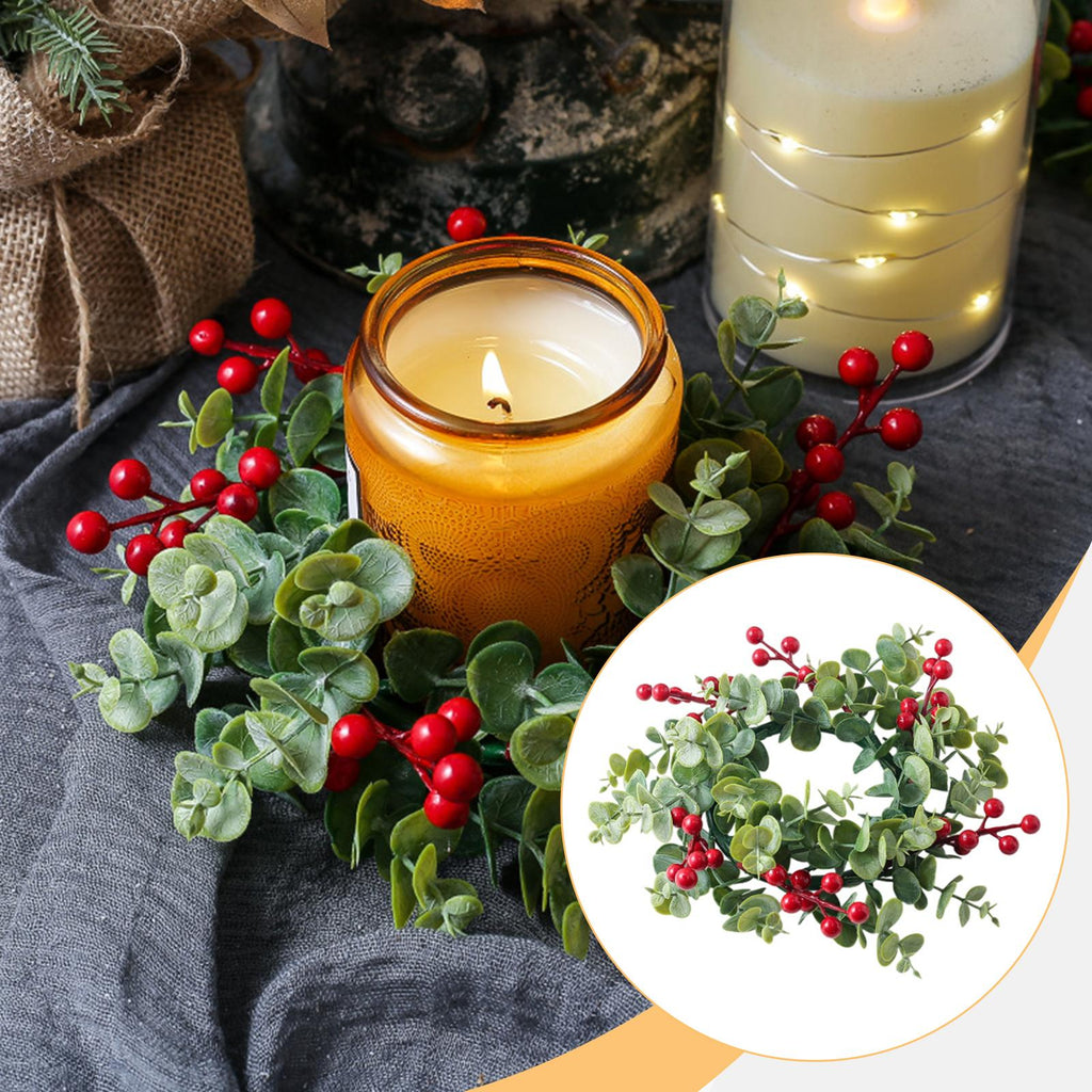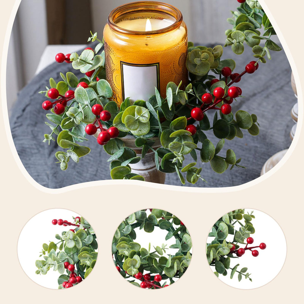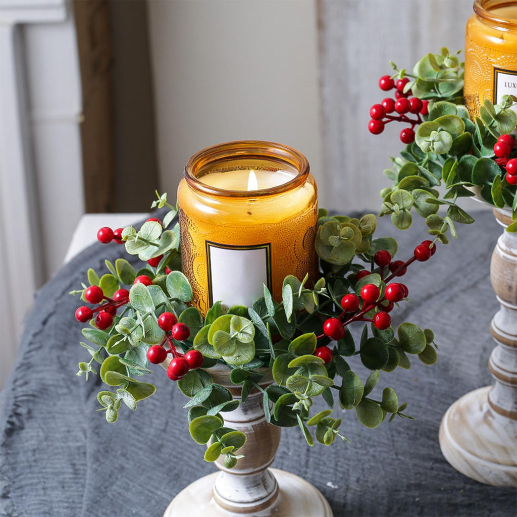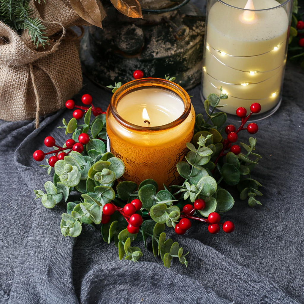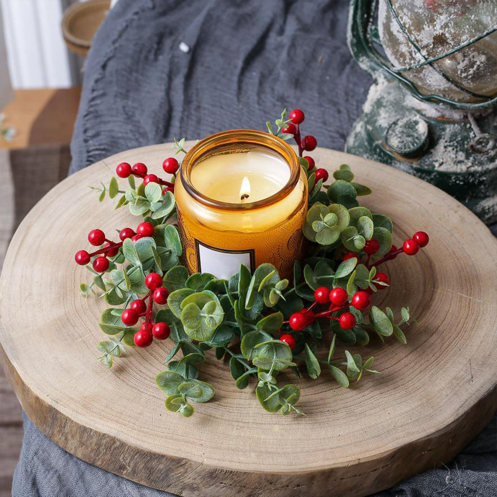 - 【 Versatile Festive Accent】: Perfectly designed as a candle ring to encircle your favorite pillar or jar candles, creating a stunning centerpiece. It's also ideal as a mini wreath for hanging on cabinets, chairs, or as a charming addition to your mantel display