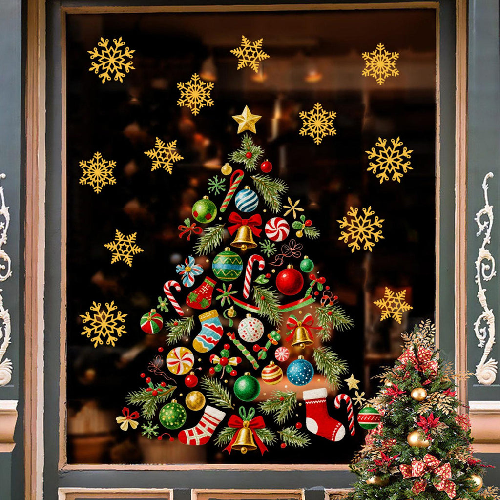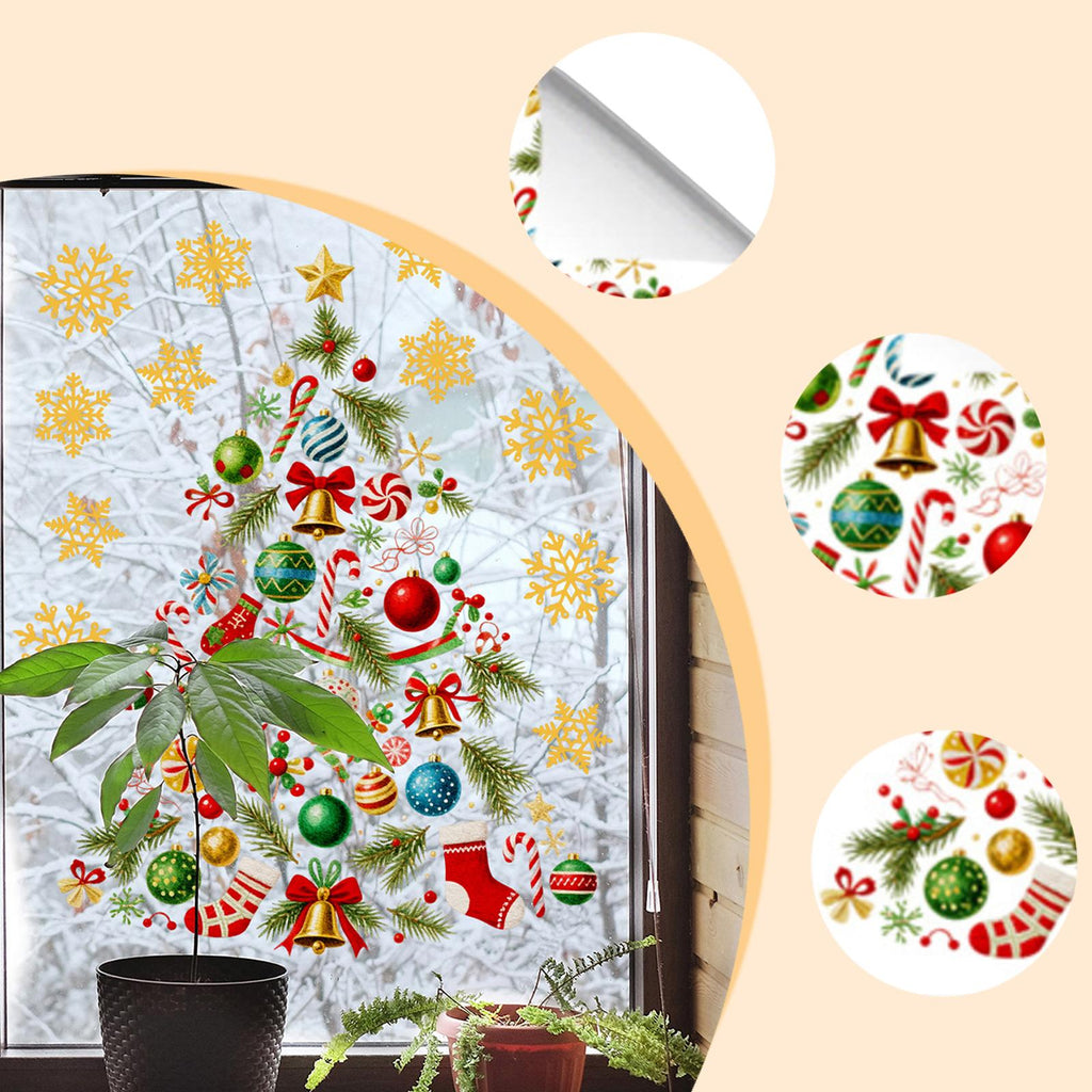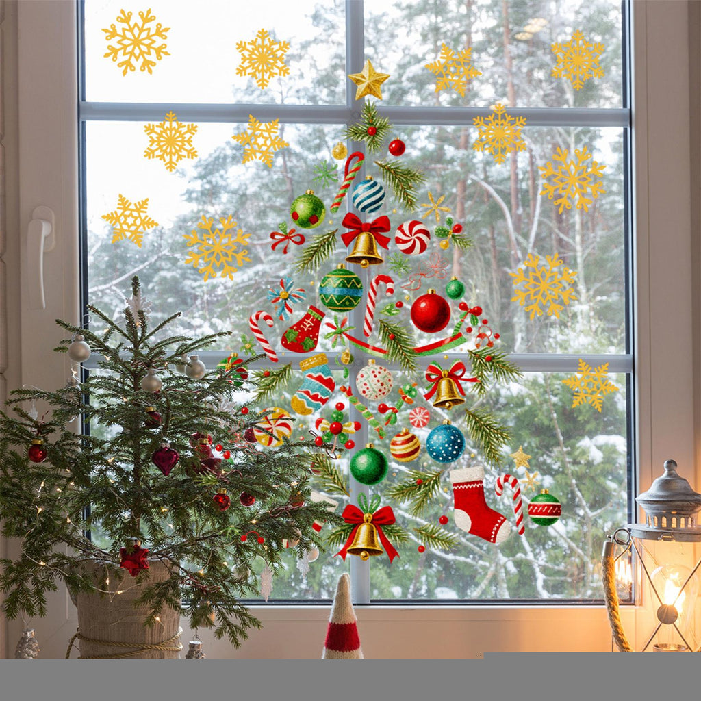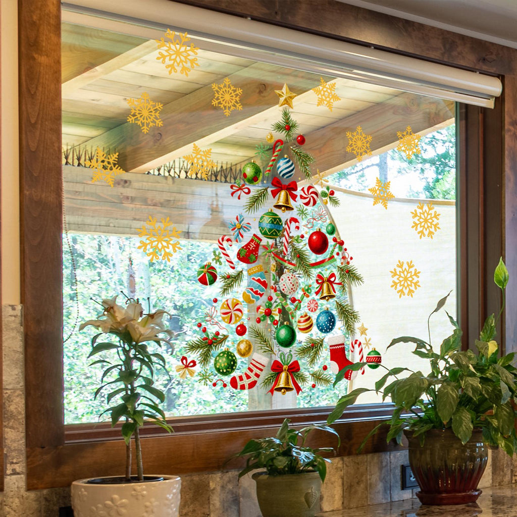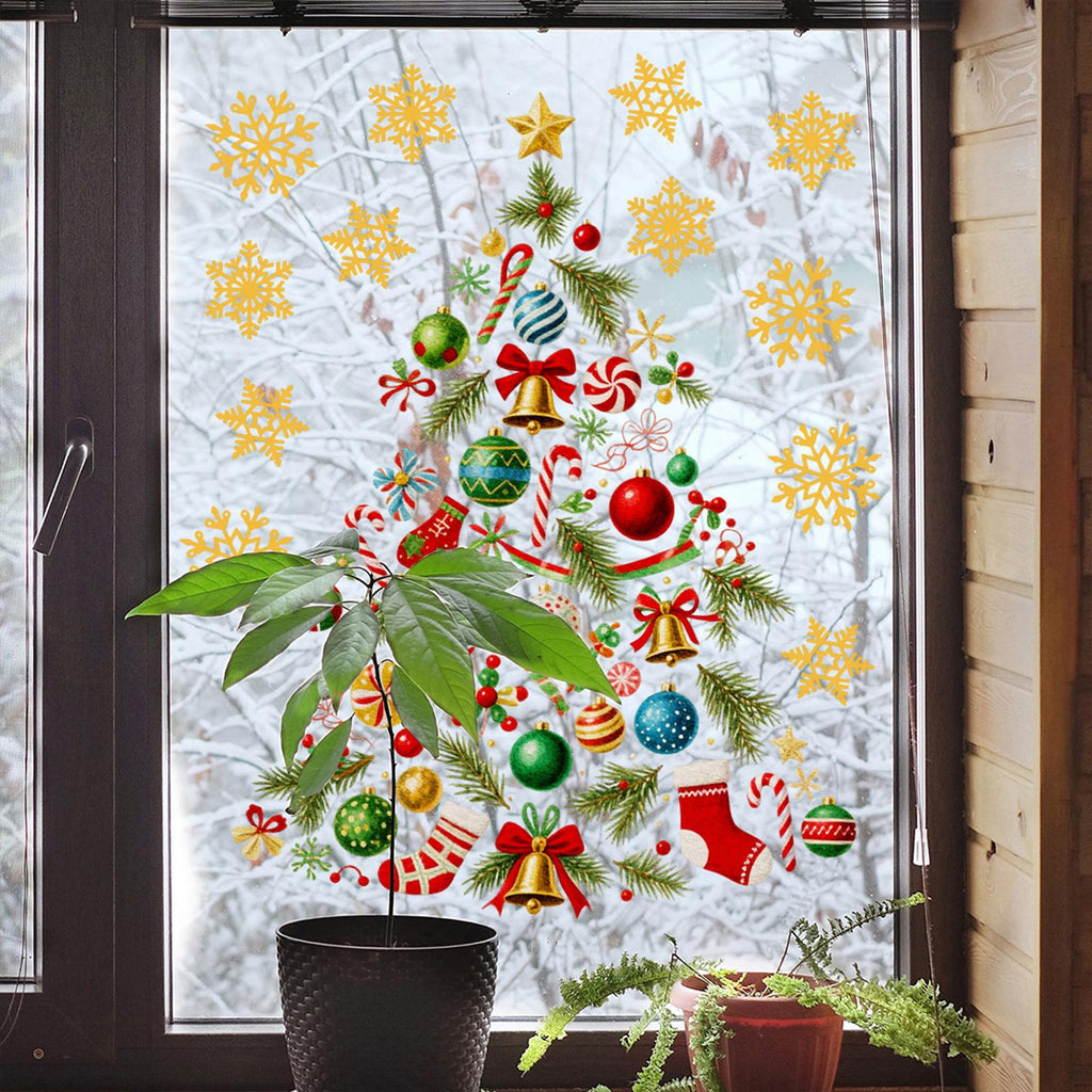 - 【Product】This Window Sticker features a creative Christmas tree shape with snowflake, adding festive charm to your window and glass doors