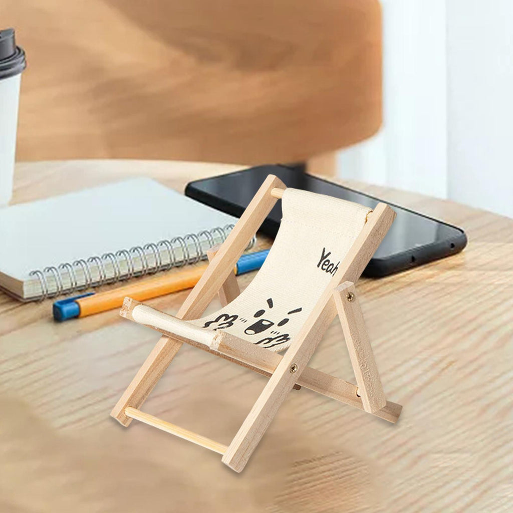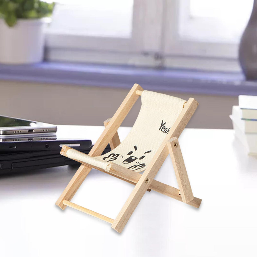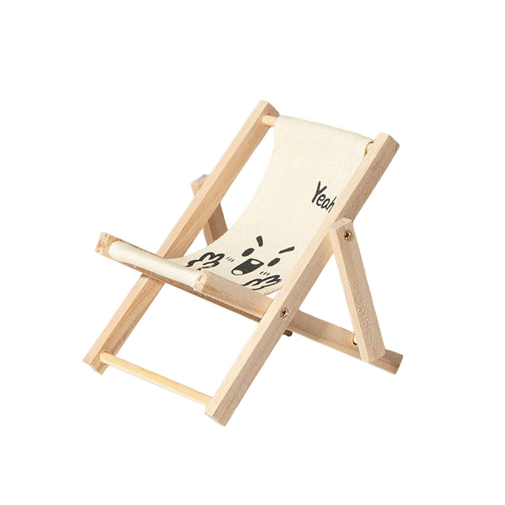 Maxbell Creative Beach Chair Phone Holder Dollhouse Miniature Bedroom Wooden Bracket White Letters