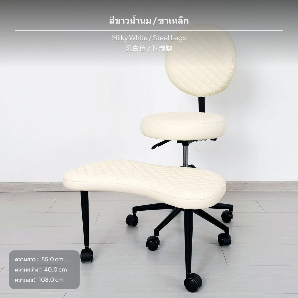 Cross-Legged Computer Chair, Ergonomic Meditation Seat, No Armrest, Adjustable Backrest, PU Leather, Mobile Footrest, Comfortable Sitting for Office stretching Milky White Steel Legs