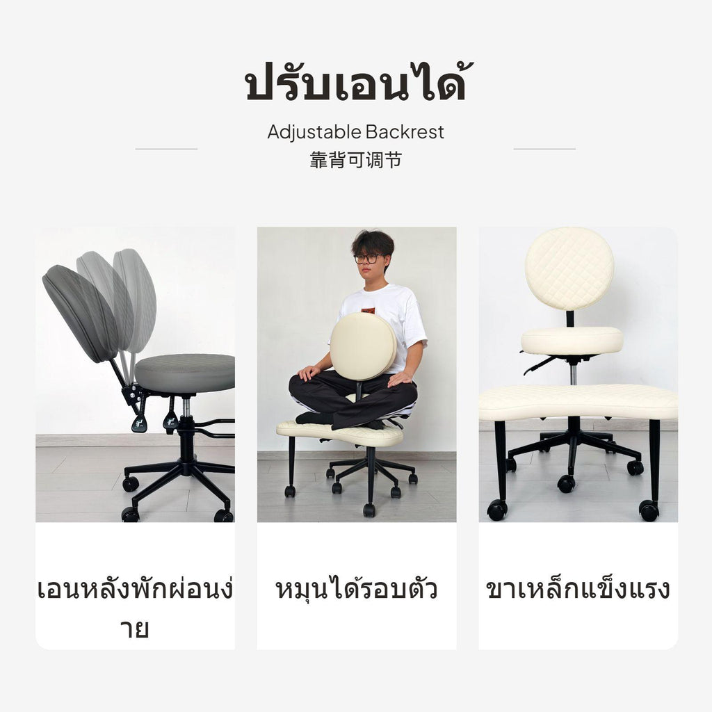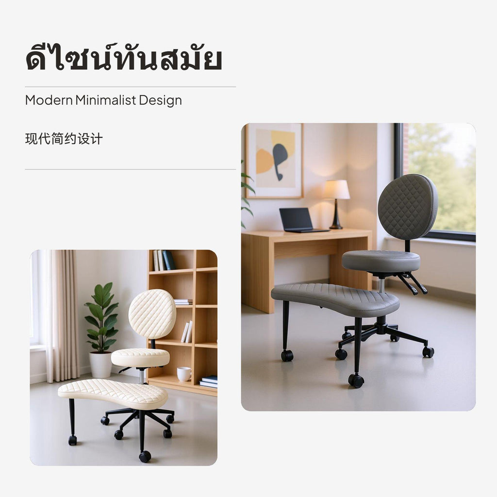 [Adaptable Sitting choices] Enjoy flexible cross-legged, squatting, or conventional sitting positions with this ergonomic chair, designed for office, meditation, and stretching scenarios.[ComfortInspired Features] PU leather seat pad and backrest, paired with a mobile footrest, offer supportive comfort for prolonged sitting and wellness routines.[Sturdy Steel Base glide casters] Constructed with a strong steel frame and equipped with glidinggliding casters, this chair is easy to move and built to support everyday use.[Adjustable Functionality] The hydraulic height adjustment mechanism and reclining backrest enable personalized height and angle adjustments to suit your physique and workspace needs.[Stylish & Spaceaccommodating Design] Available in multiple hues and featuring a modern stitch pattern, this armless chair blends seamlessly into home study or office environments while elevating your space.Specification: