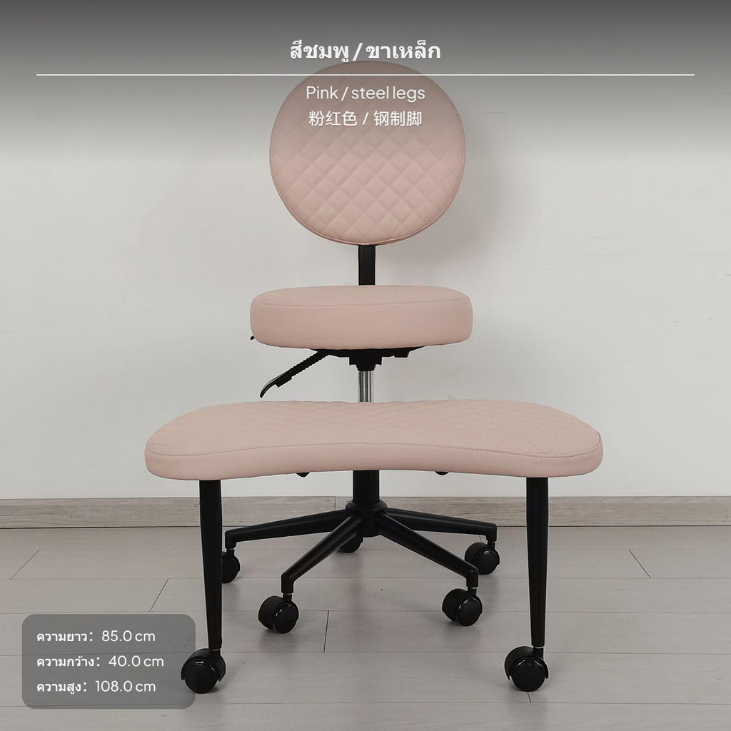 Cross-Legged Computer Chair, Ergonomic Meditation Seat, No Armrest, Adjustable Backrest, PU Leather, Mobile Footrest, Comfortable Sitting for Office stretching Pink Steel Legs