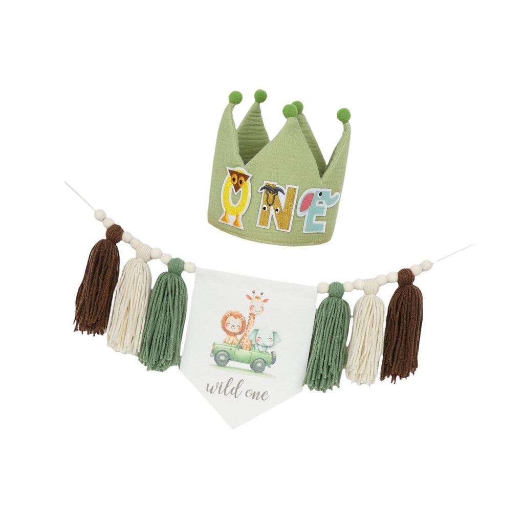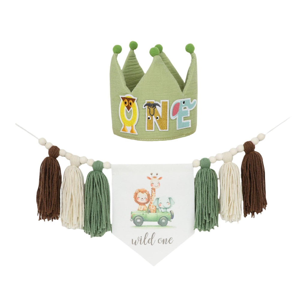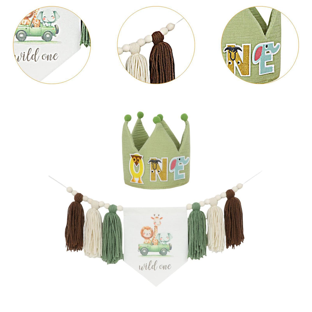 Maxbell Crown Hat Home Decoration Birthday Accessories Photo Props High Chair Banner With Cartoon Hat