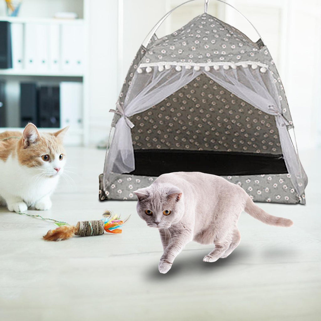 Four corner tent cat kennel: summer semi enclosed cat house kennel, removable and washable pet supplies, also suitable for decorating your house!