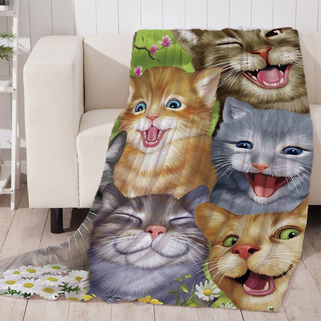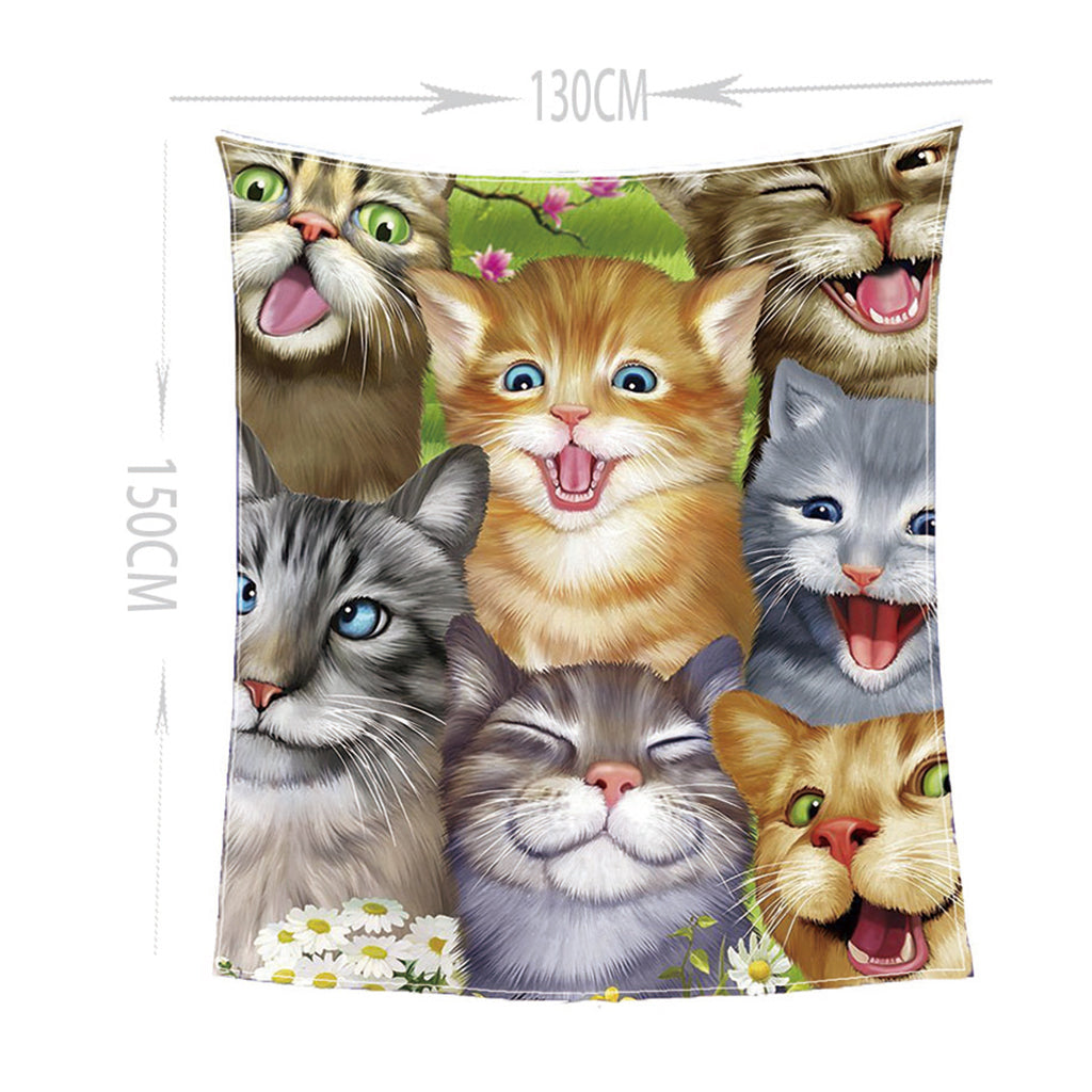Maxbell Digital Printing Flannel Blanket Soft Bed Sofa Throw Cats 130x150cm