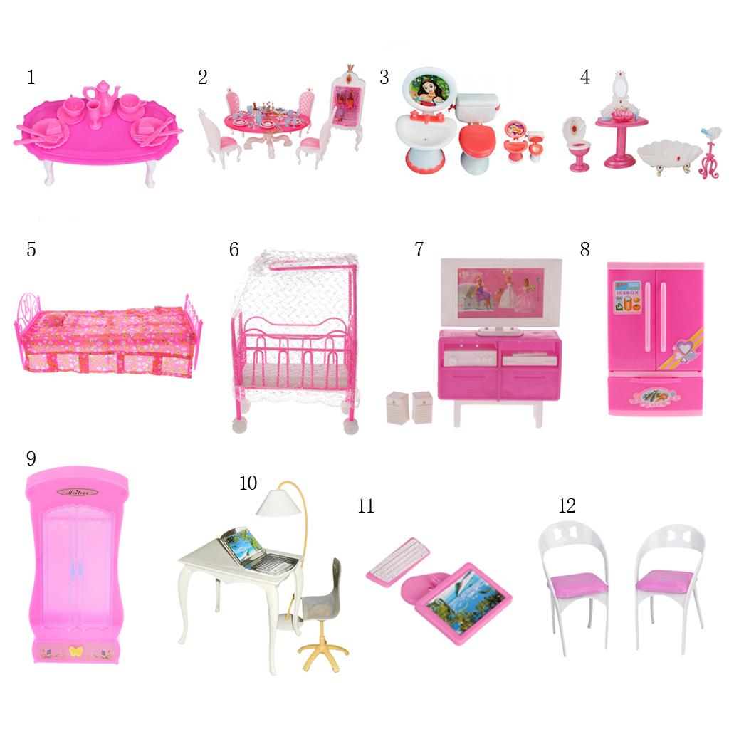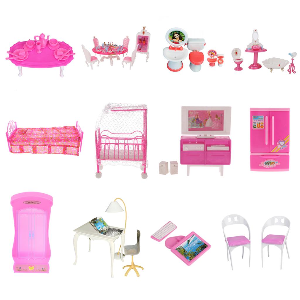 Maxbell Dining Room Furniture Dining Table Set for Barbie Doll Shocking Pink & White