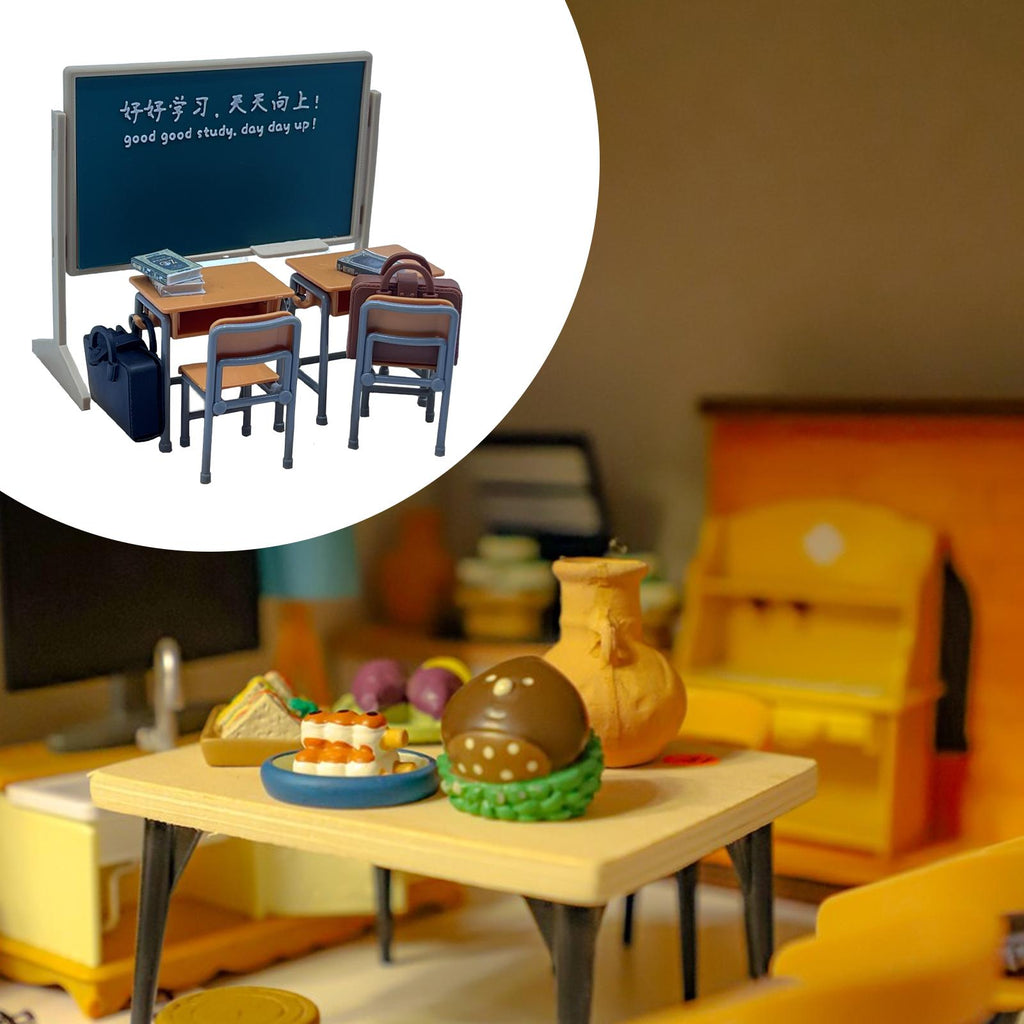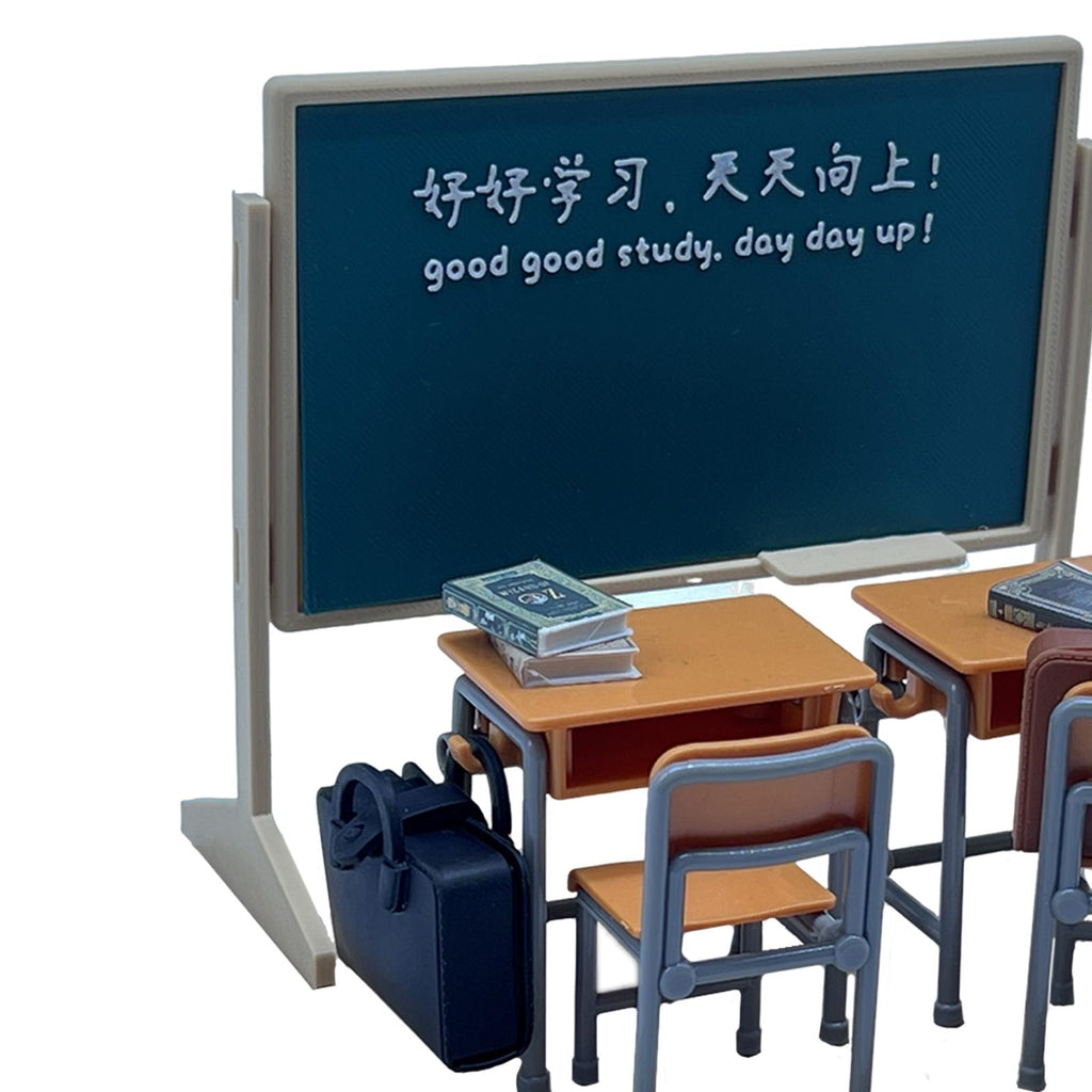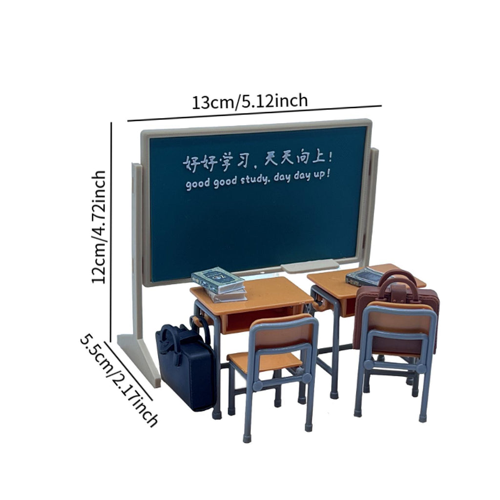 - 【Quality Material】: Made from plastic materials, this dollhouse blackboard desk and chair model is finely crafted with sturdy construction, ensuring long use and intricate detailing