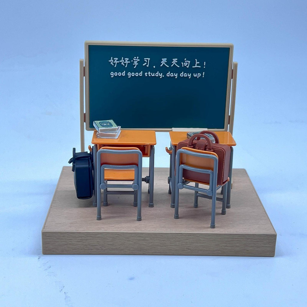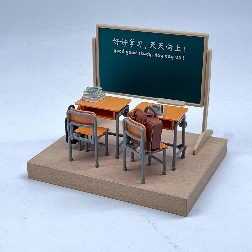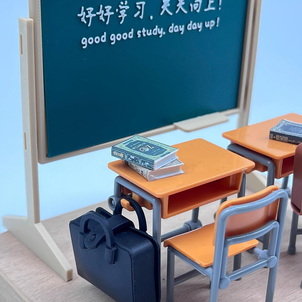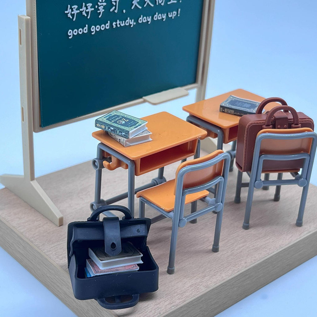 - 【Quality Material】: Made from plastic materials, this dollhouse blackboard desk and chair model is finely crafted with sturdy construction, ensuring long use and intricate detailing