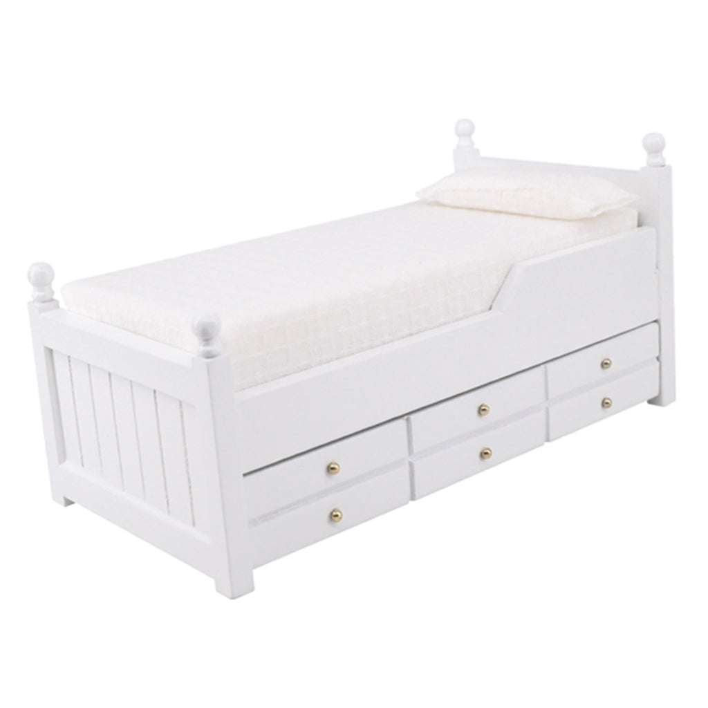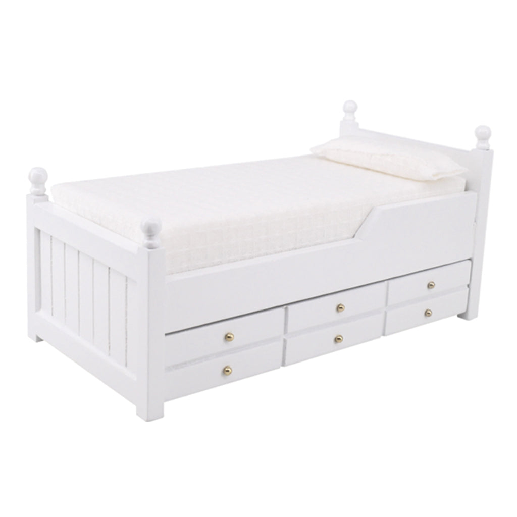 Maxbell Dollhouse Miniature Drawer Bed Furniture Model Two Layers Wood for Bedroom