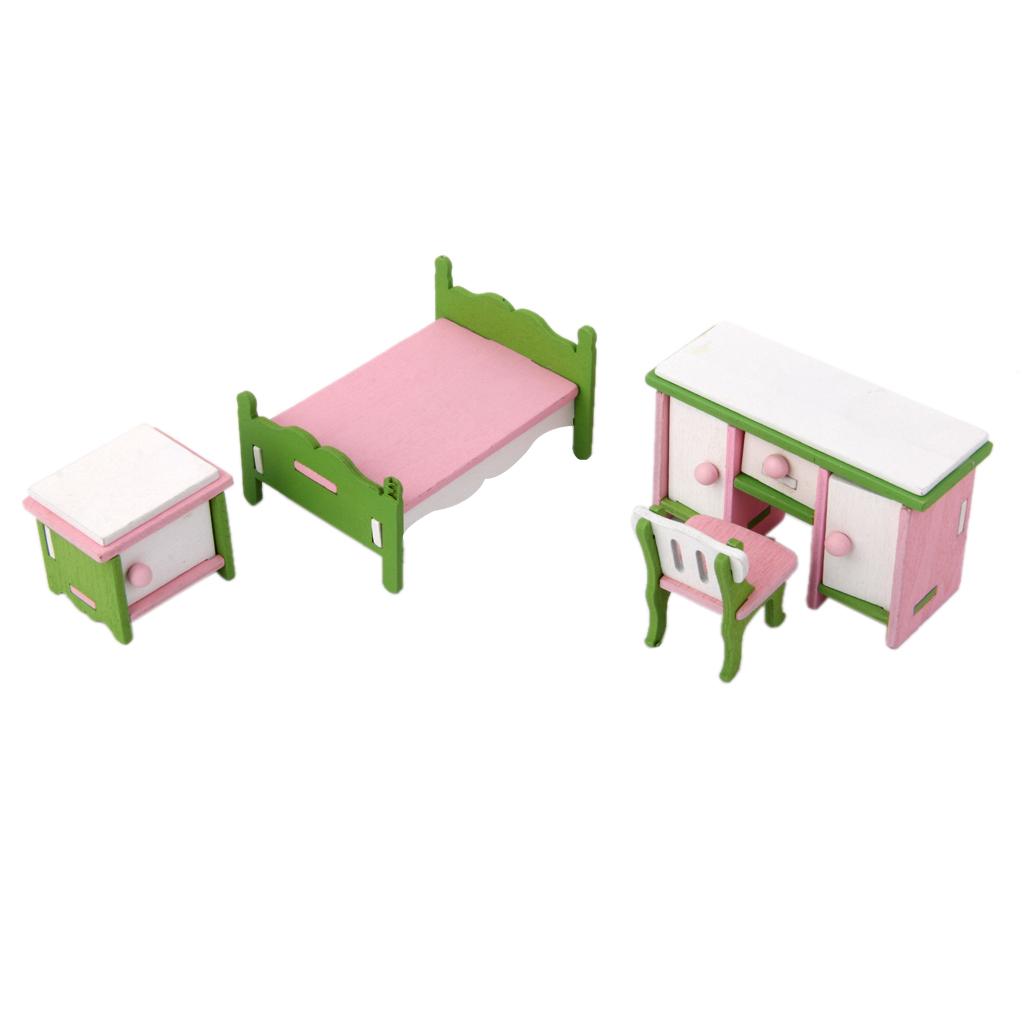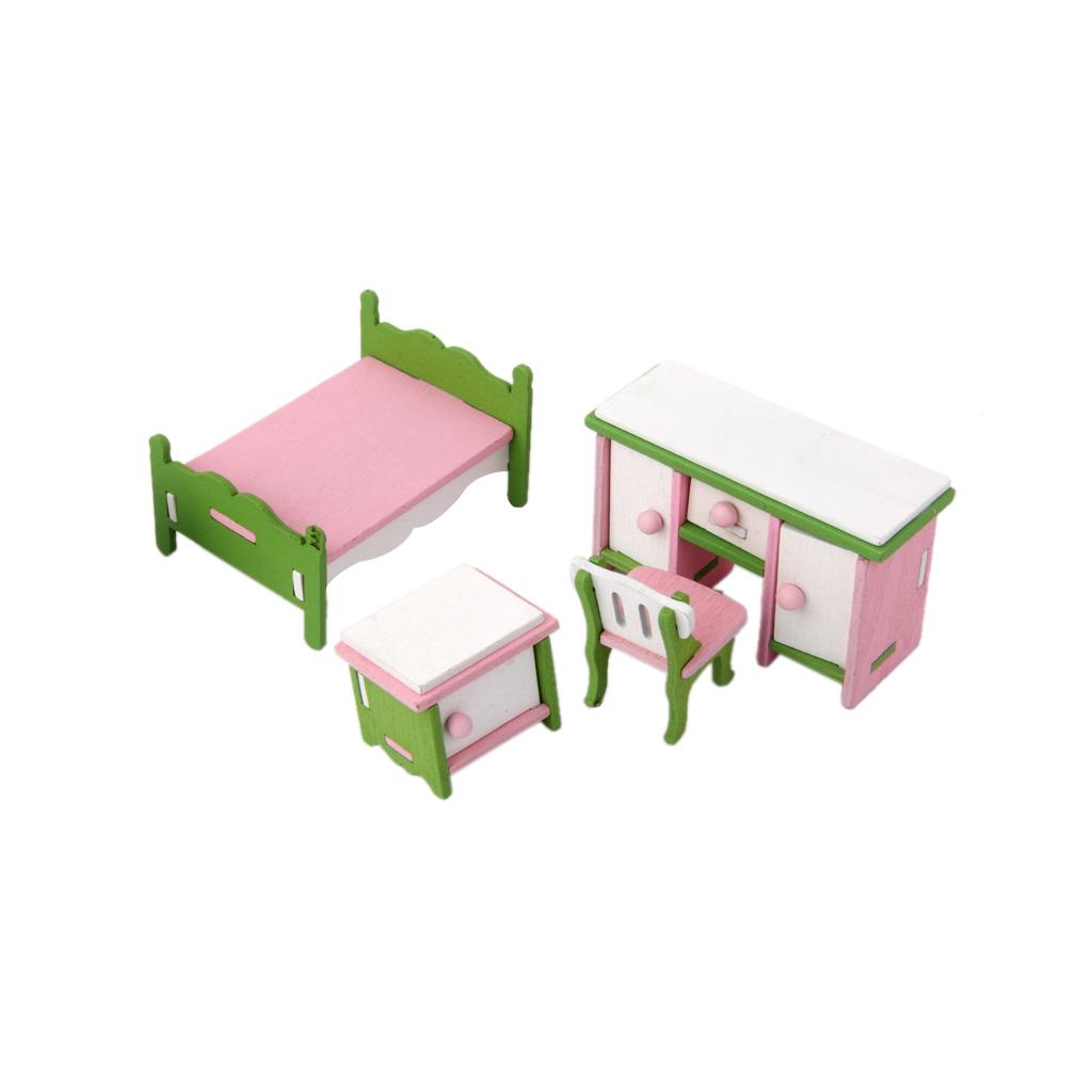 Maxbell Dollhouse Miniature Furniture Wooden Toy Kids Bedroom Set